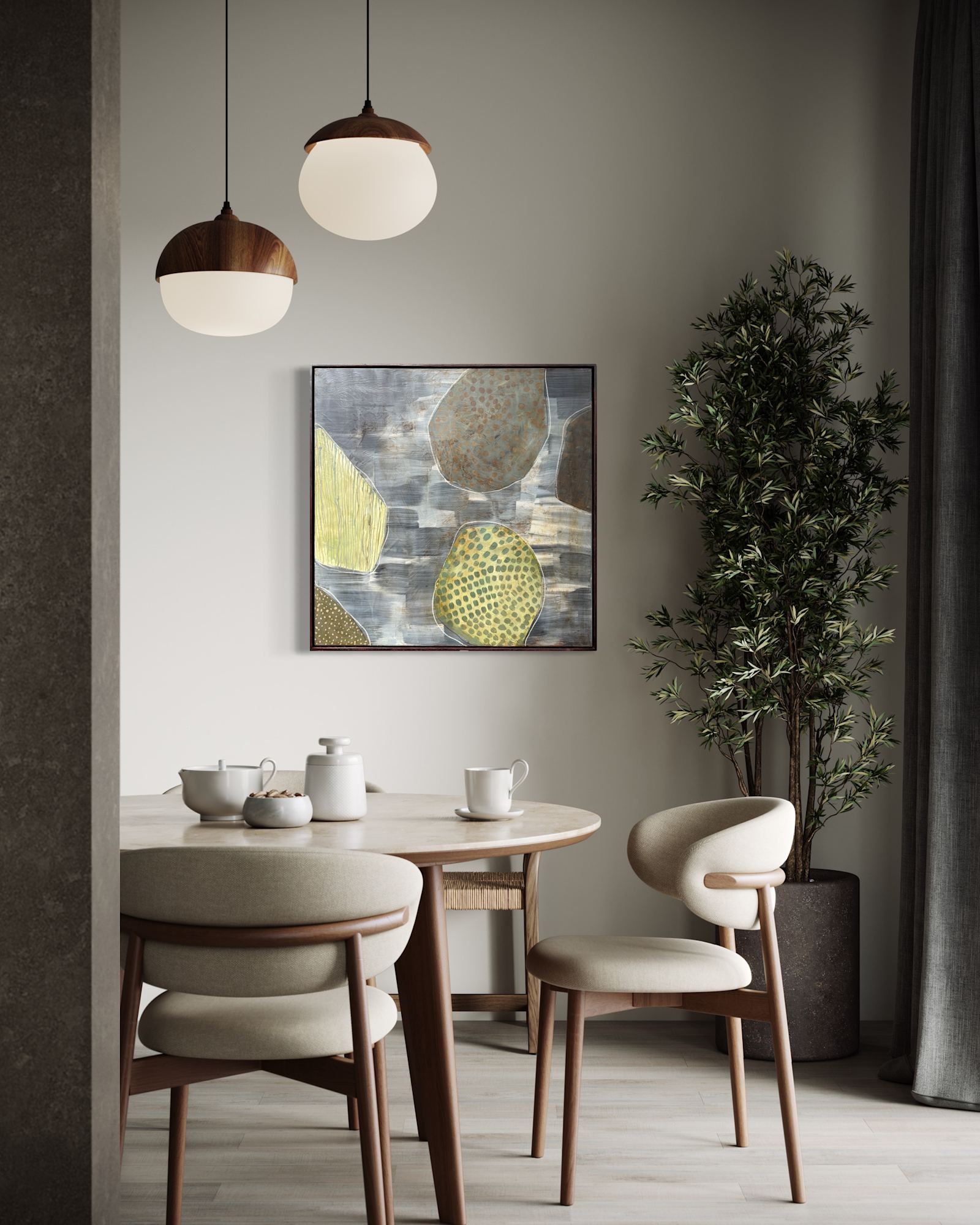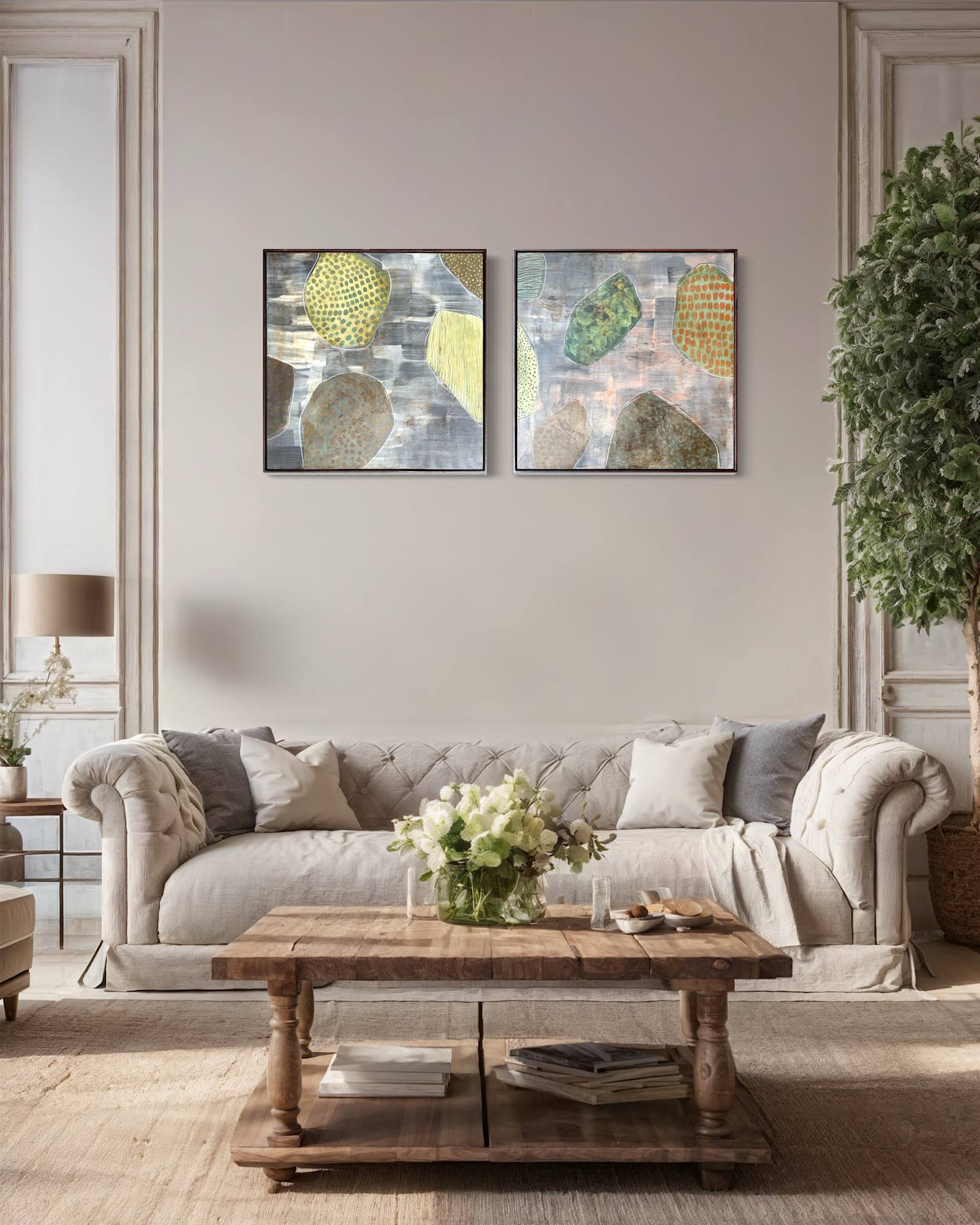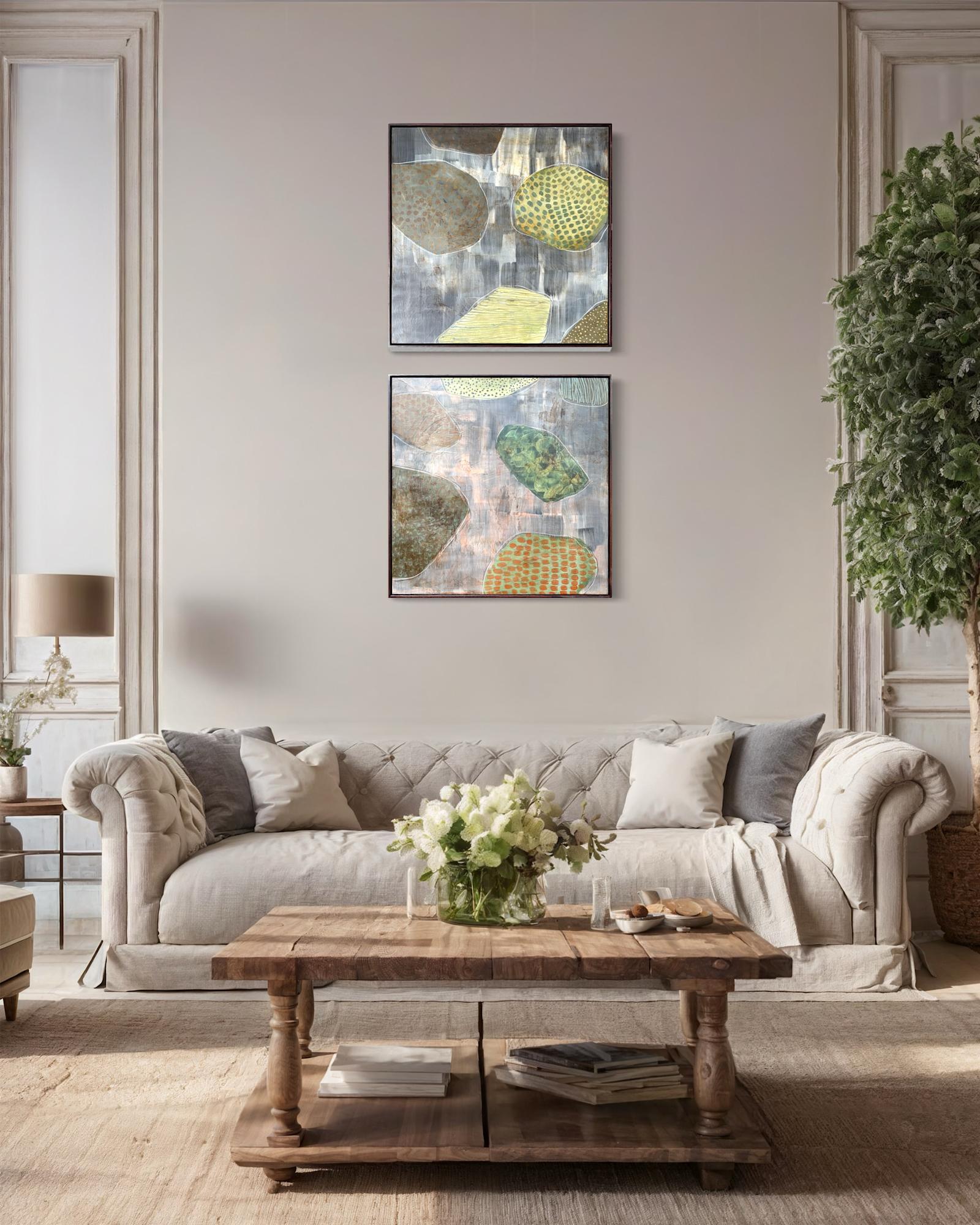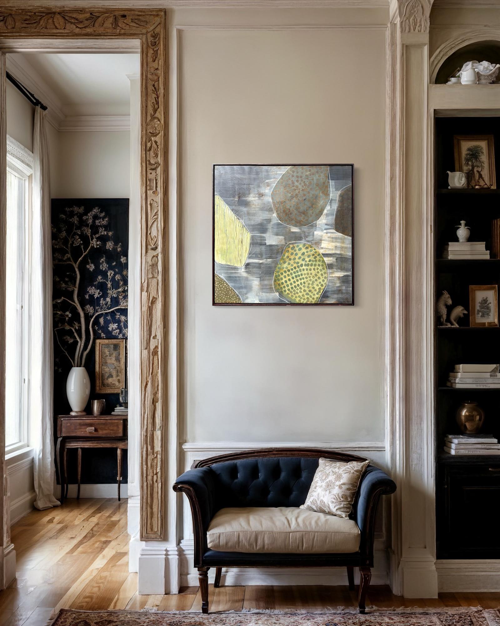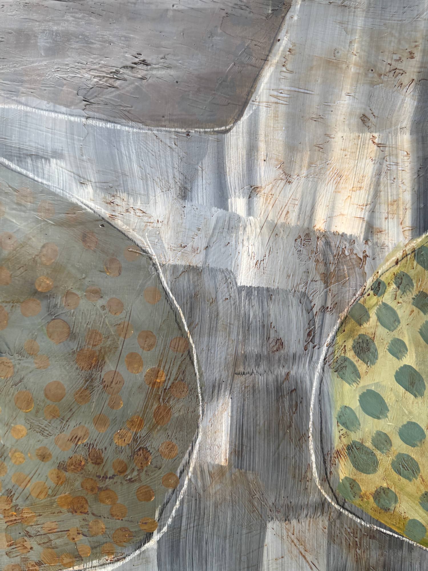 Mixed Media : Encaustic Wax, Acrylic, Stain on Wood, Solid Oak Frame
