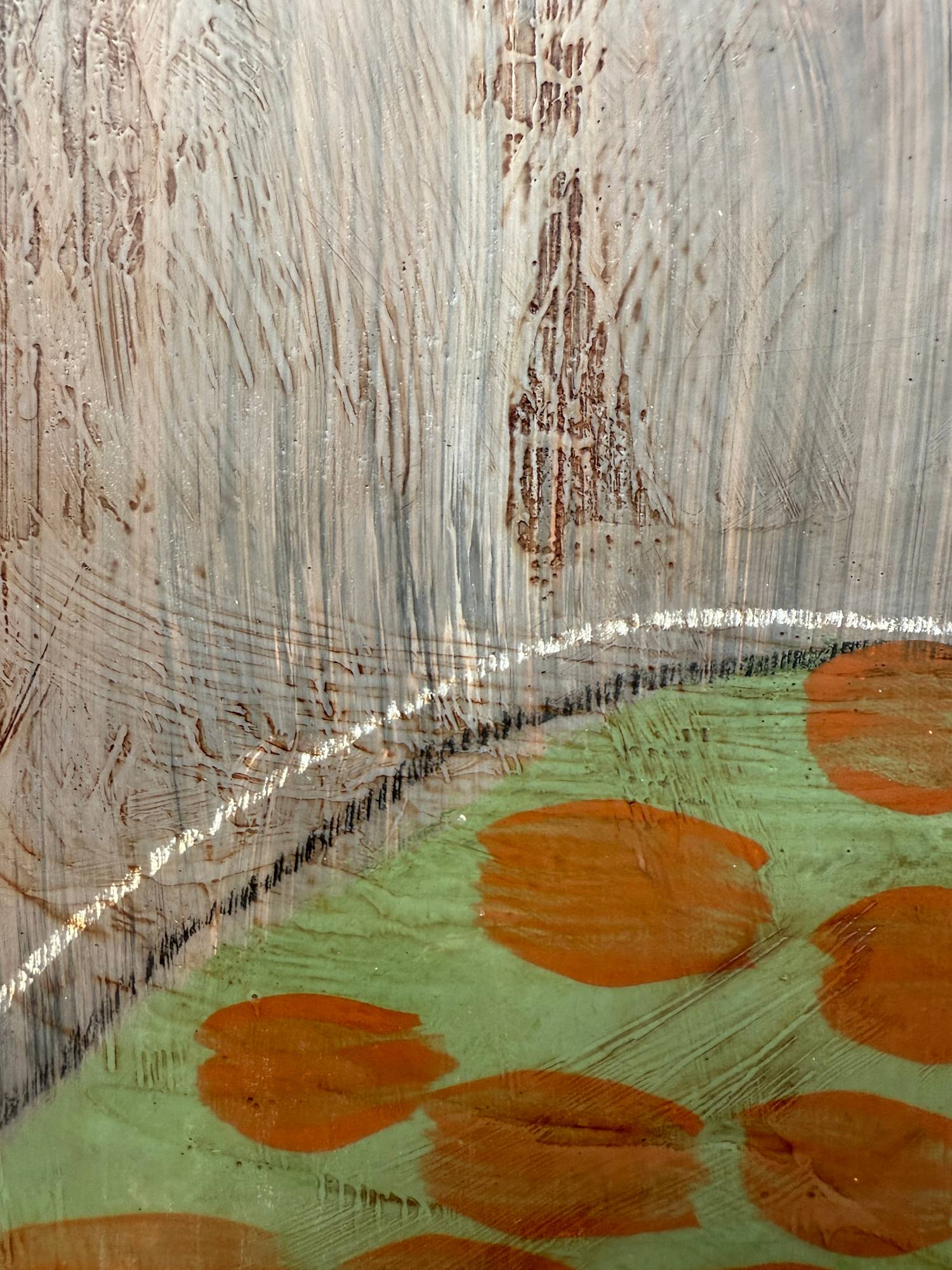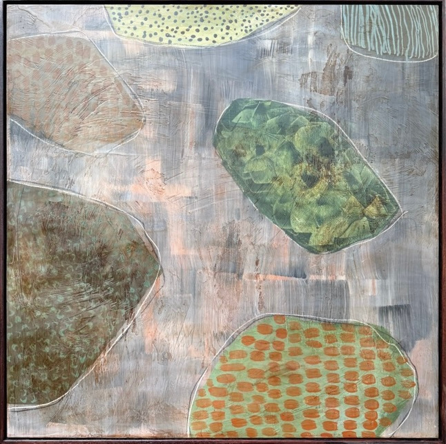 Mixed Media : Encaustic Wax, Acrylic, Stain on Wood, Solid Oak Frame