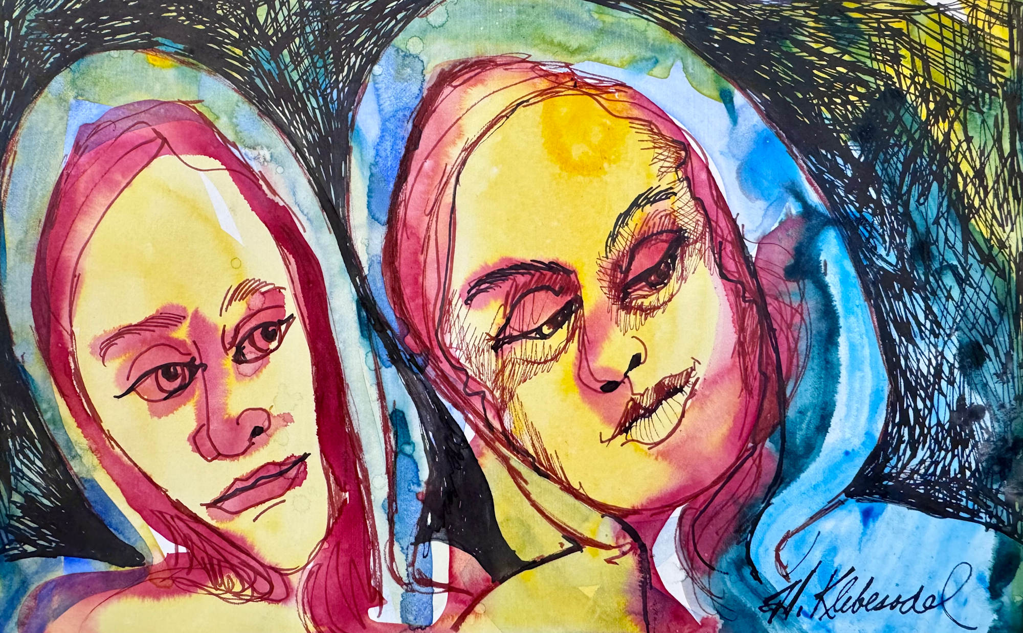 For all of 2024 I drew almost every day as a visual meditation. I drew with ink into the watercolor teaching samplers that I created while teaching watercolor workshops. When I sat down to draw into the small loose watercolors, I looked at the simple paintings and I 'found' or enhance an image to draw out with details in ink for my audience to enjoy.