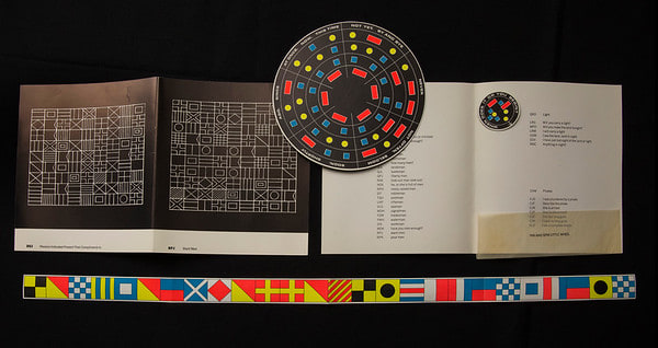 These are prints: 2 Brochures, One with Four Poems and the other with Pictorial Translations of the Poems using the International Code of Signals for Ships at Sea; there is also a print of a Flag Poem titled "Long Poem for Roy Lichtenstein".