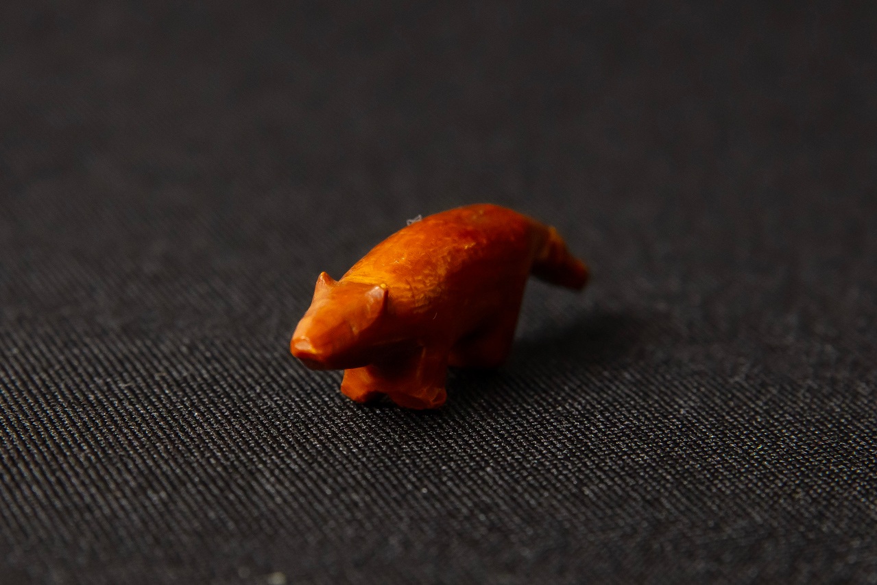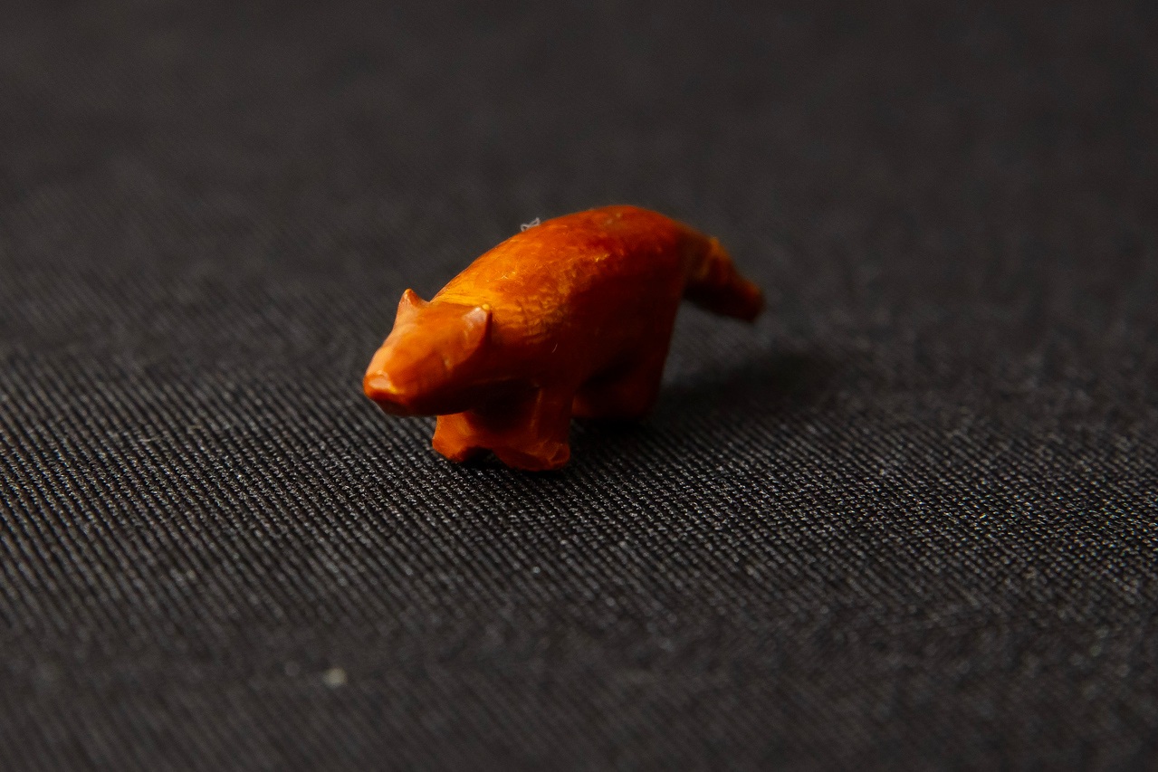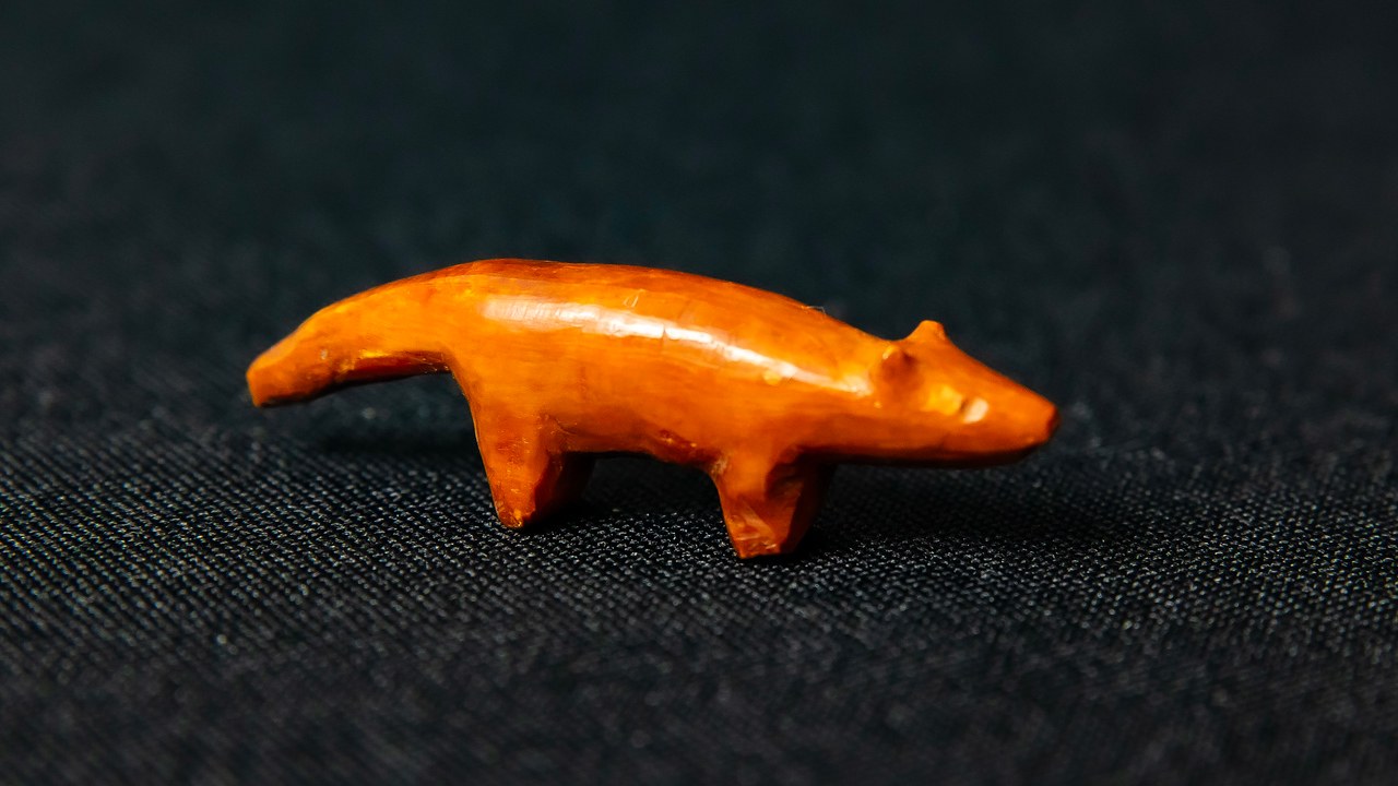 This is a fossilized ivory Eskimo amulet depicting an arctic fox. Thank you to Jonathan Klarsfeld for the generous donation of this work.