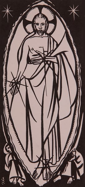 - Untitled (Holy Cards--Black Ink Standing Jesus with 2 Small Figures Below on White Paper), c. 1970