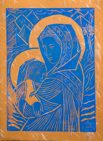 - Untitled (Madonna and Child--Bright Blue Ink on Brown Paper), c. 1960s-1980s