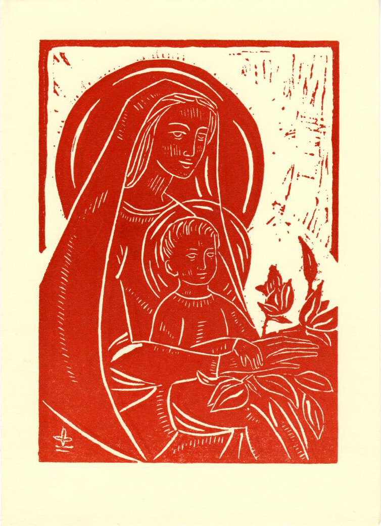 - Untitled (Madonna and Child--White Ink on Orange-Red Paper), c. 1960s-1980s