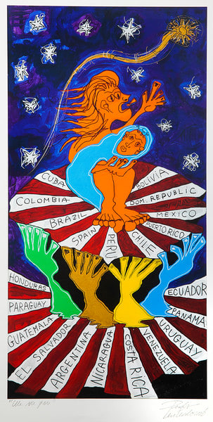 Thank you to Benjamin J. Dineen III and Dennis C. Hull for the generous donation of this work. The artist describes himself as an "artivist"--a visual artist, filmmaker, educator, and cultural visionary. Here is a link to the trailer of his documentary, How Many Lives? which is about gun violence: https://www.youtube.com/watch?v=MvU1_TxdC20 .