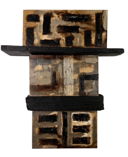 • Assemblage of mixed media reclaimed wood panels and charred timber