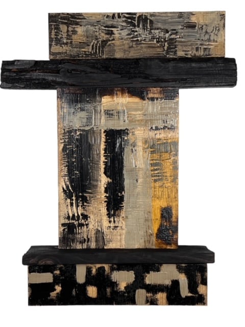 • Assemblage of mixed media reclaimed wood panels and charred timber