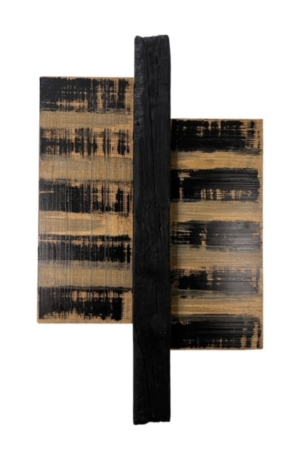 • Assemblage of mixed media reclaimed wood panels and charred timber