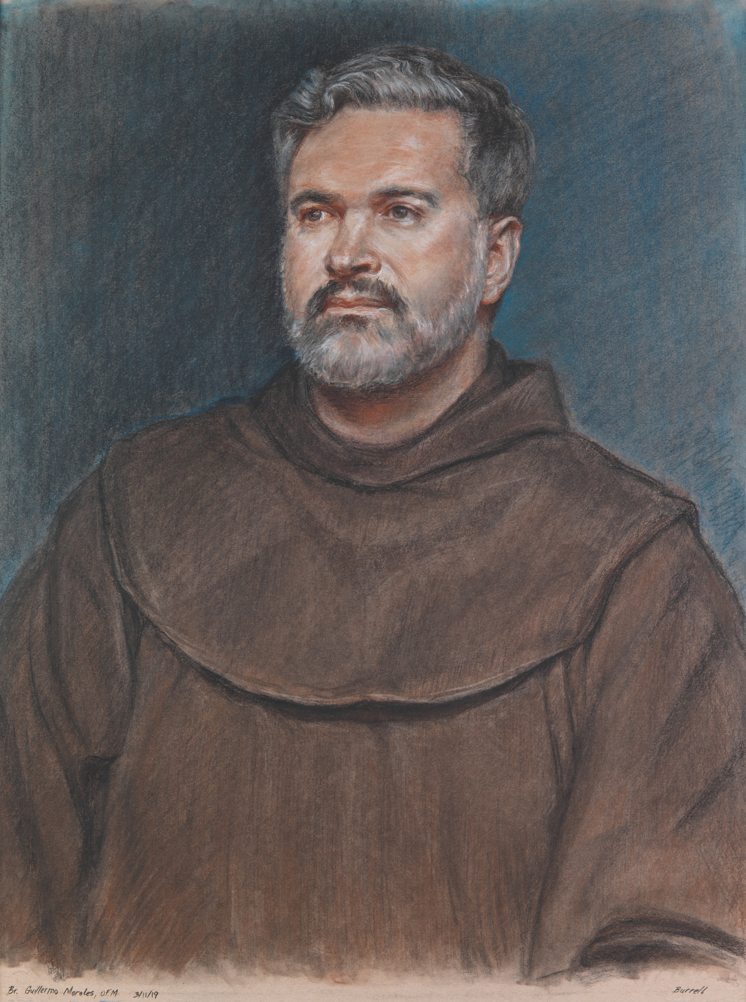 Conté and Chalk portrait of Br. Guillermo Morales, OFM