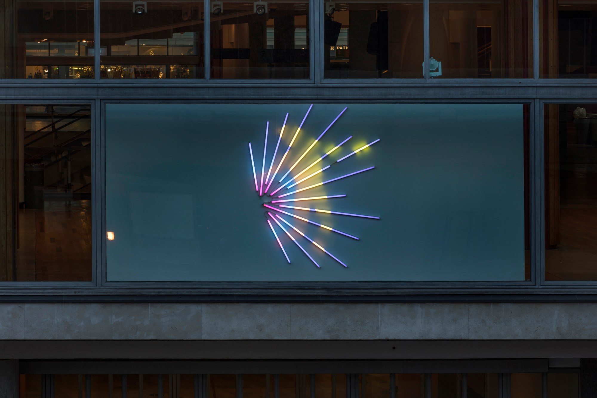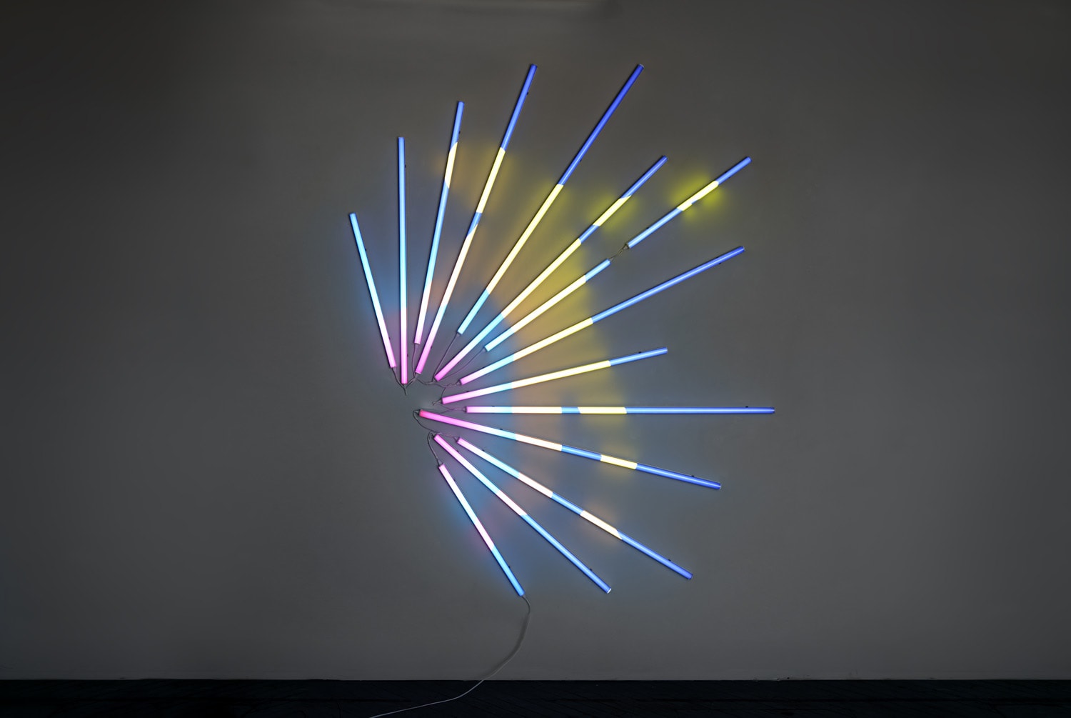 The Freefall works are from a series of 13, each unique. Clar was inspired by motion lines in comic books and animation, recreating this effect through lines of light. Other works in this series are in the collections of the Yves Klein Foundation (Paris), the Borusan Collection (Istanbul), among others.