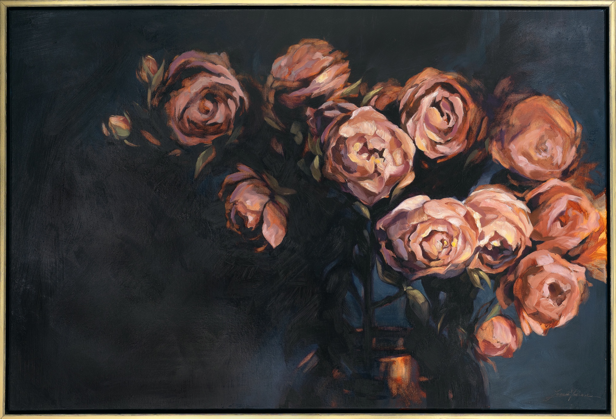 ‘Companionship’ is an oil painting representing the idea of companionship. The peach roses represent the tenderness of a relationship between people, while the vase symbolises the vessel that holds love and connection. The arrangement of the flowers suggests a harmonious and balanced partnership, where each individual contributes to the beauty and growth of the other. My hope is this artwork celebrates the power and beauty of human companionship, and reminds us of the importance of nurturing our relationships with love, care and attention.