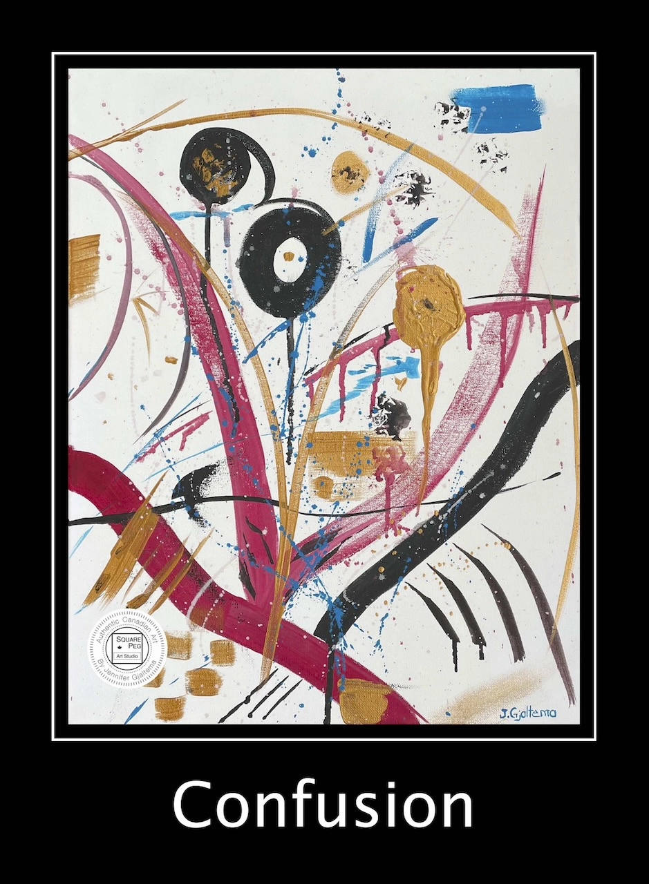 I tried to draw the viewer into the emotional landscape of confusion. The vivid abstract swirls in shades of red, gold, and black try to create a chaotic yet captivating composition. The intense reds suggest a sense of urgency, while the gold hints at fleeting moments of clarity. The deep blacks represent the unknown and the shadows of uncertainty. Together, these colours evoke a powerful depiction of turmoil, where certainty is elusive, and emotions are in constant flux.