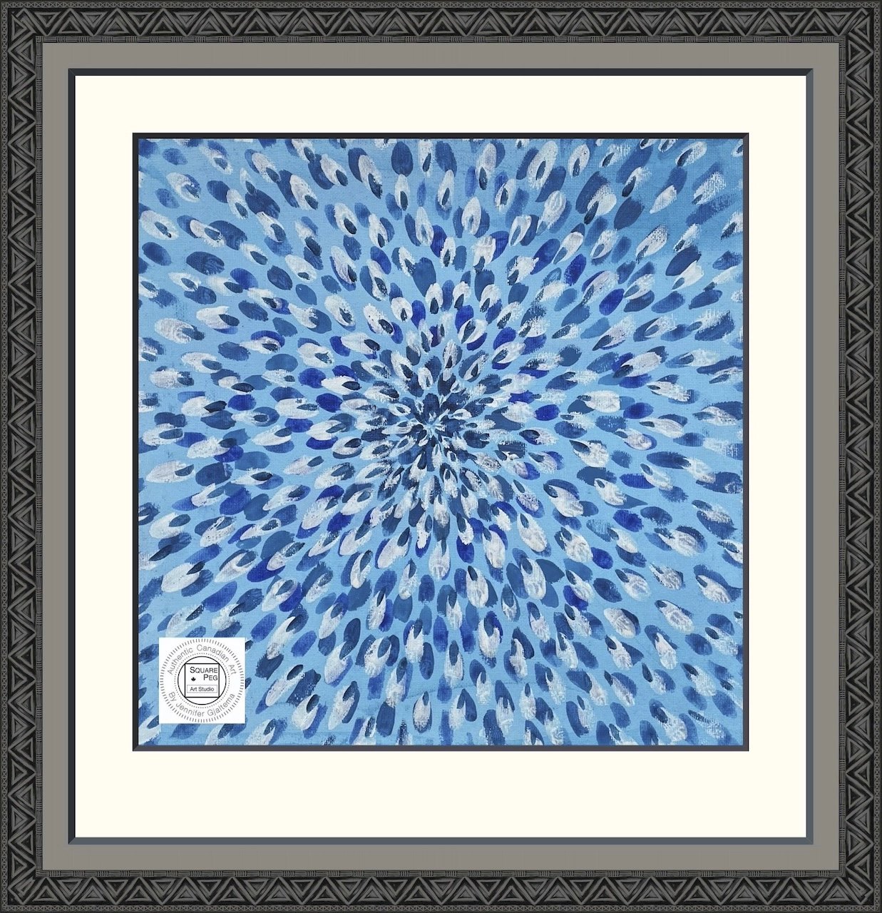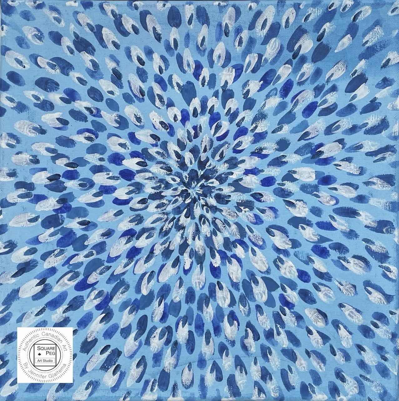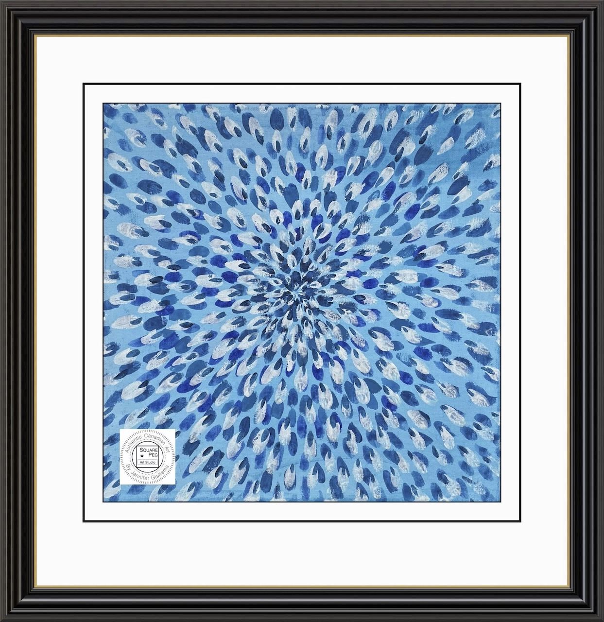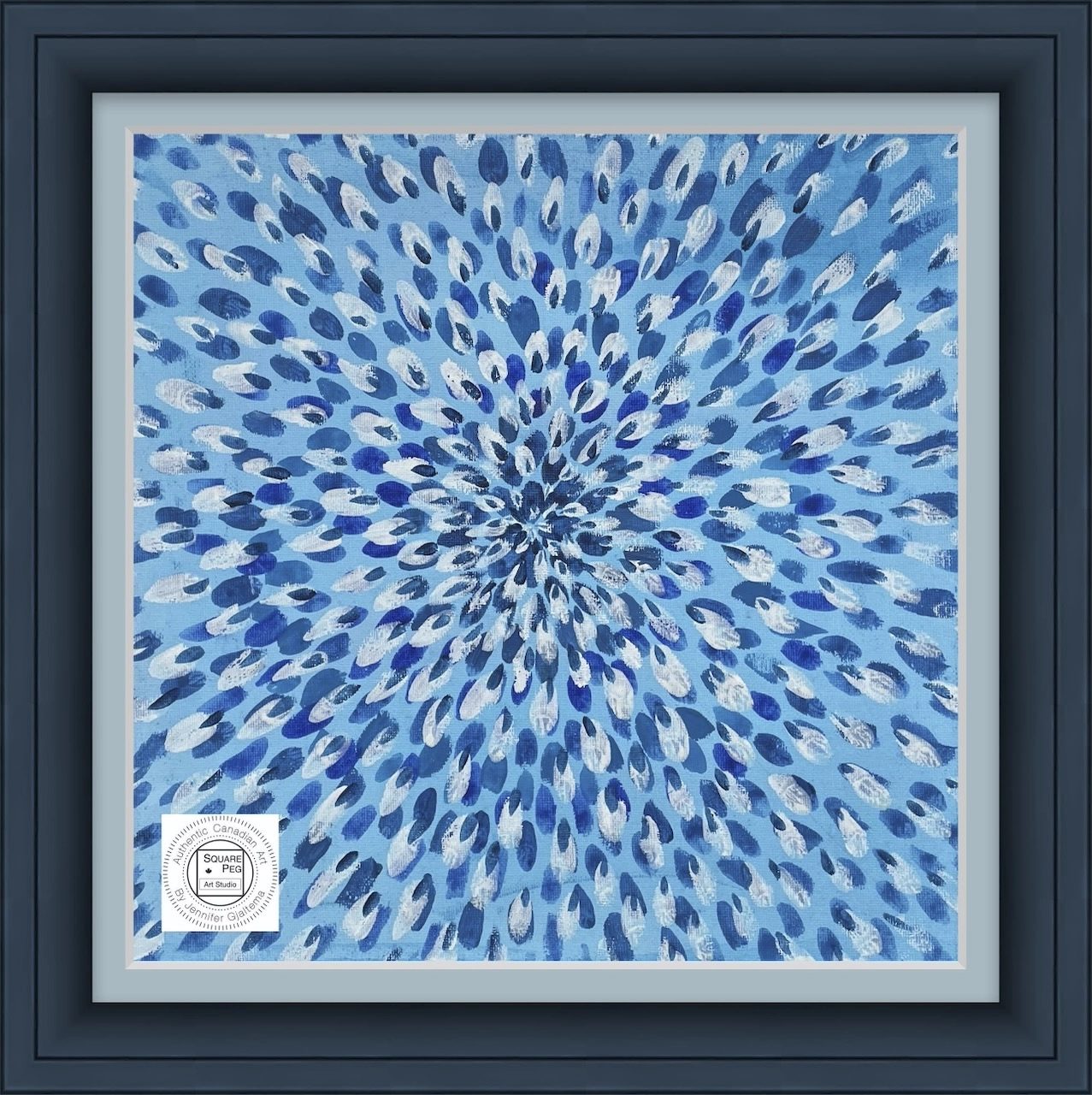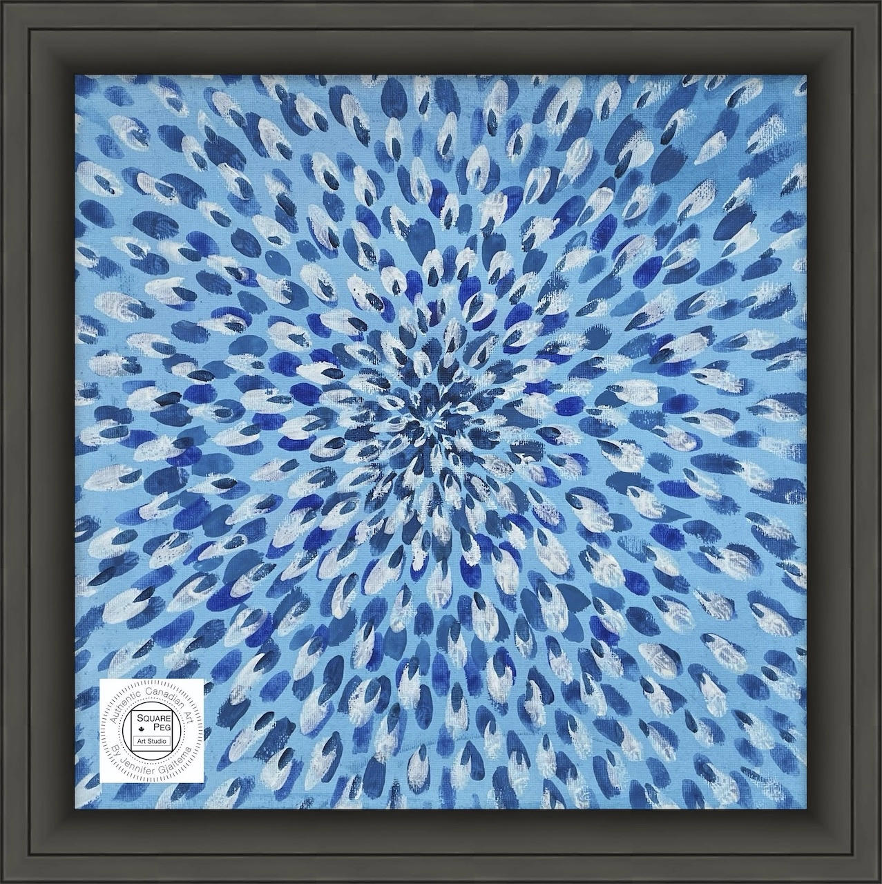 A bright, colourful, high-contrast painting ... An attention grabber. Done in a unique style, in shades of blue, that draw your focus into the painting … . Perfect for a “blue” room