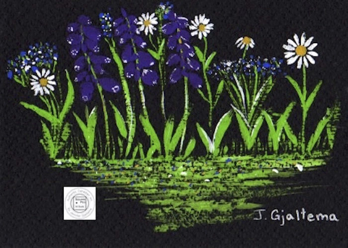 Who would have thought the flowers would be posing in the dark ? Even at night they are colourful and bright ! This is a small, light hearted, conversation piece expressing an unlikely scenario.