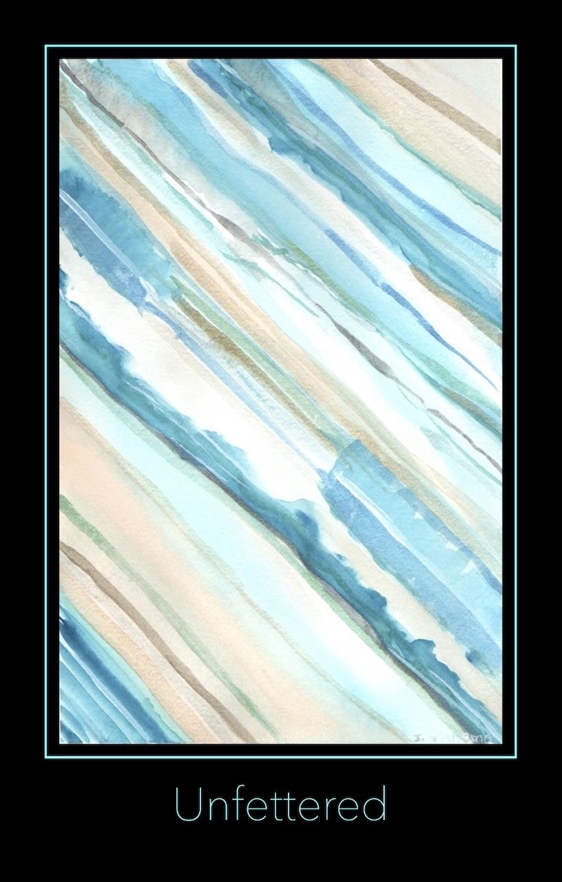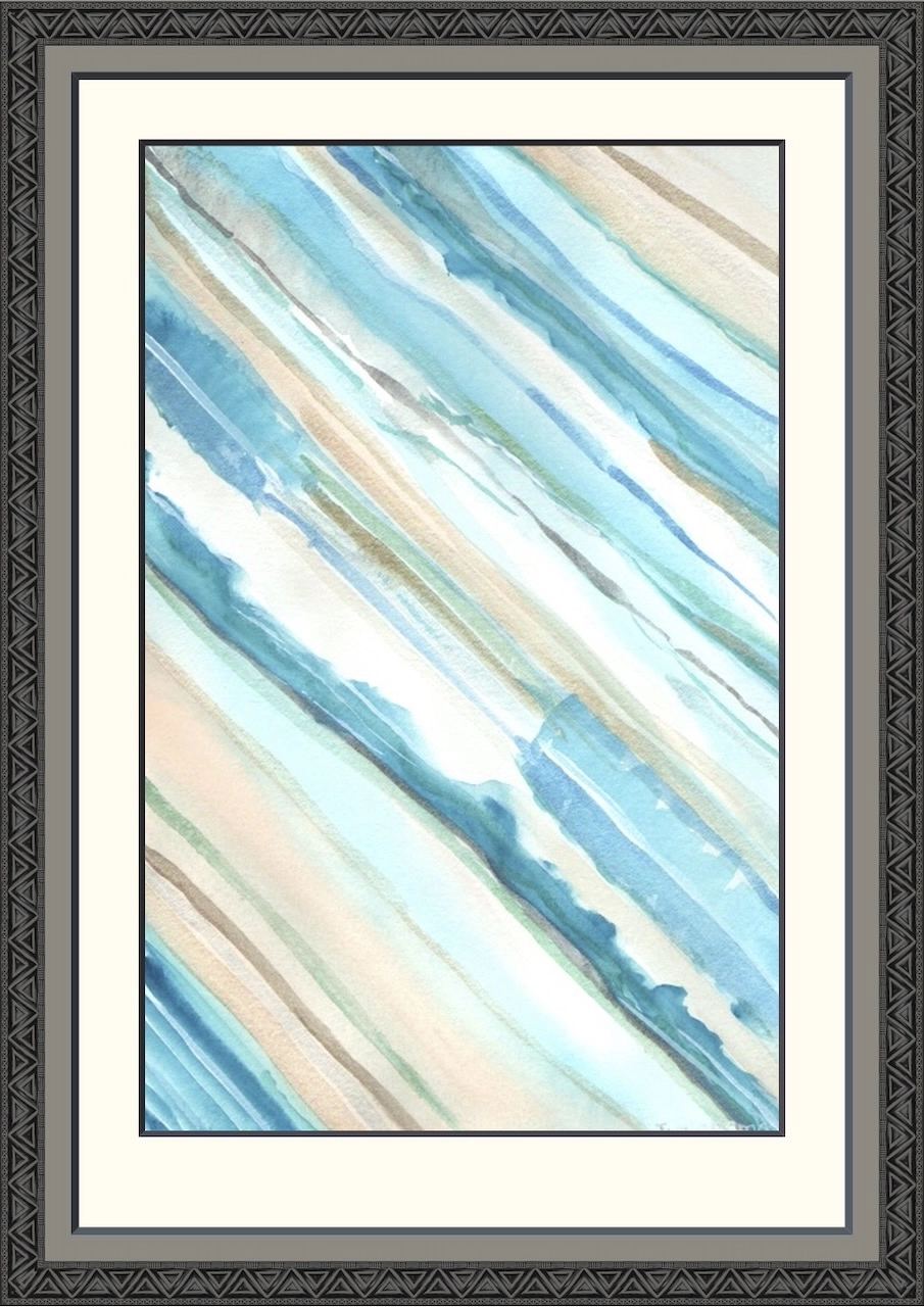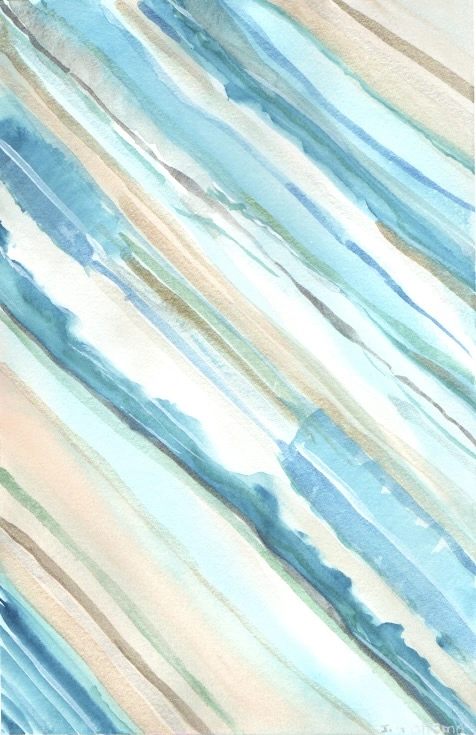 This artwork highlights the beauty of simplicity found in life’s quiet moments. … through the flowing diagonal stripes of soft blue and tan. Each stripe weaves effortlessly into the next, evoking feelings of calmness. Inspired by a sunny day lounging by the pool, the gentle colours attempt to capture the soothing feelings created by the reflections from the pool back to the senses, inviting the viewer to relax.