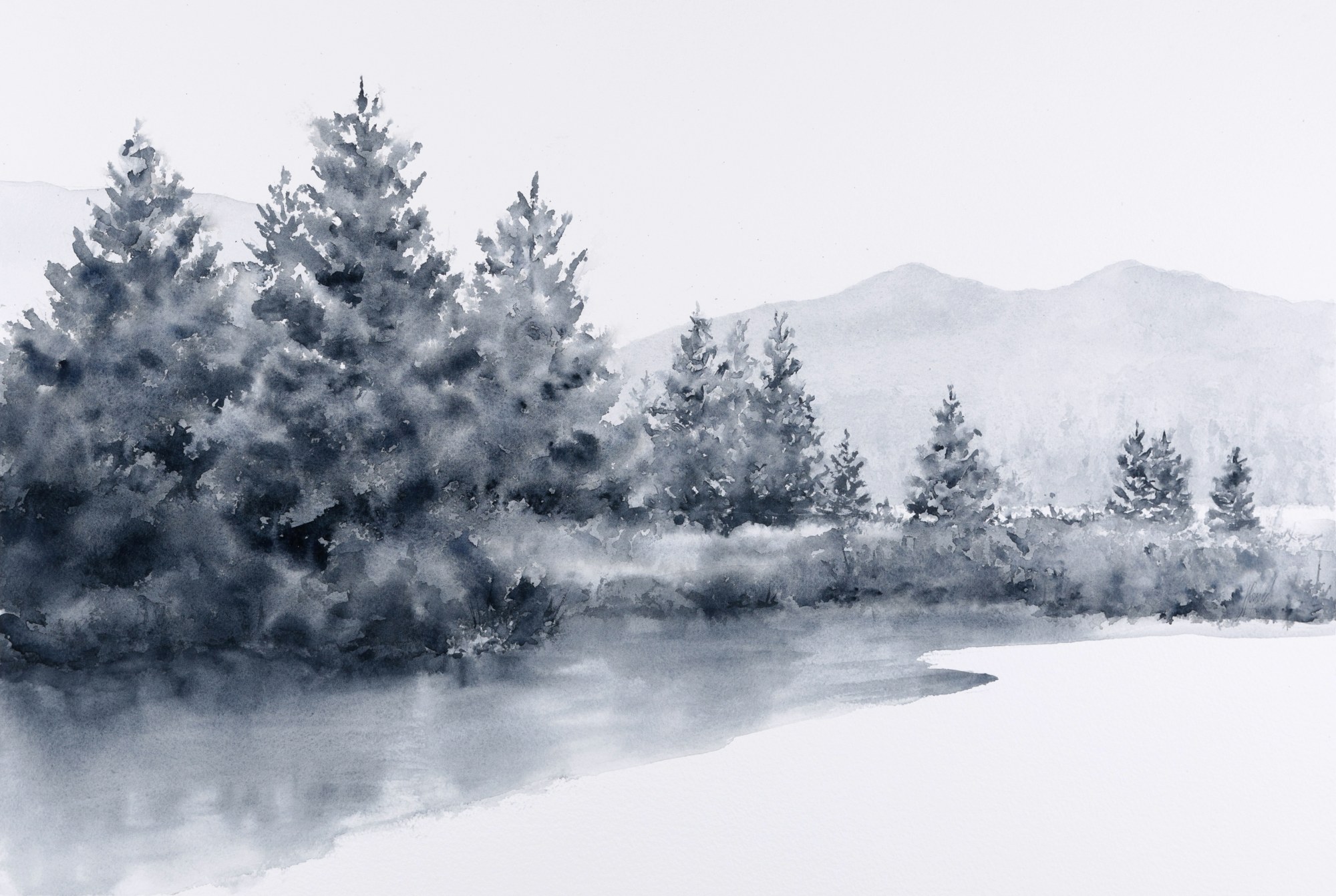 MessageBy limiting the painting to one color, a bit of distraction is removed, simplifying the scene and bringing a special serenity to the painting. Too much detail in one color could overwhelm, however, so each landscape is painted as a vignette, eliminating the sky and much of the foreground. The result is a very relaxing scene that goes right to the heart of what I wanted to communicate in the landscape.