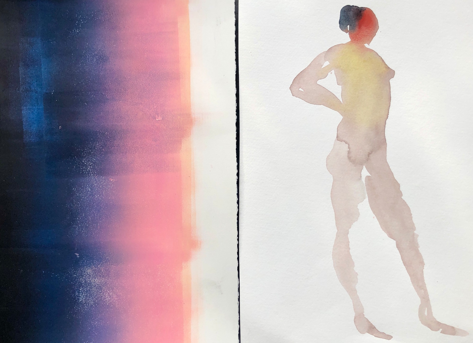 Watercolor, acrylic on watercolor paper.