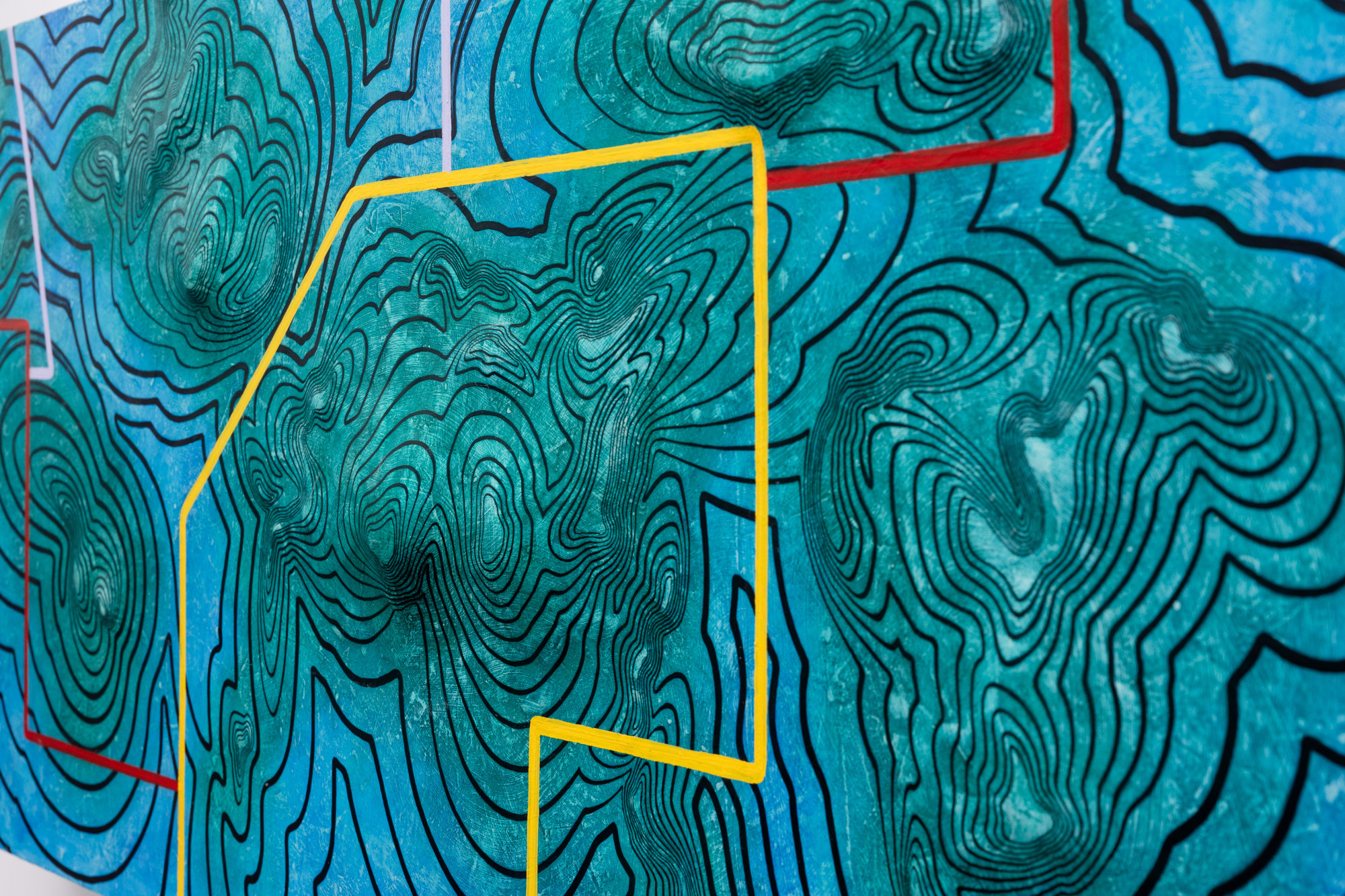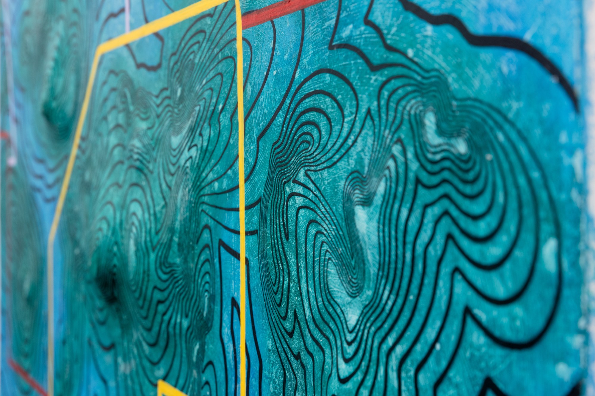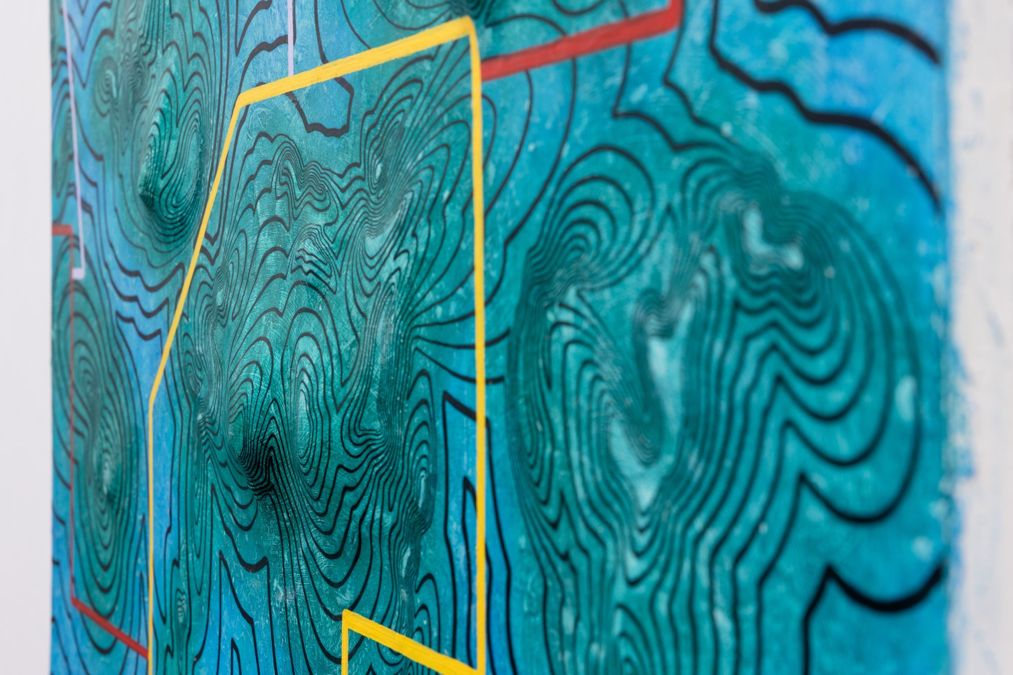 • Mixed Media, autobody filler putty, acrylic, oil, oil marker on wood pannel.