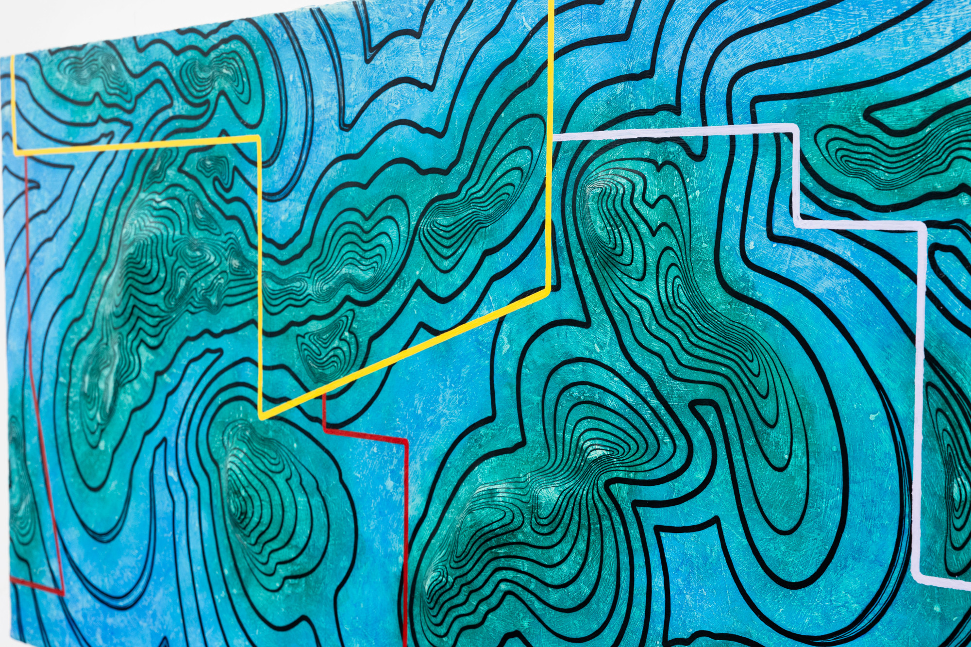 • Mixed Media, autobody filler putty, acrylic, oil, oil marker on wood pannel.