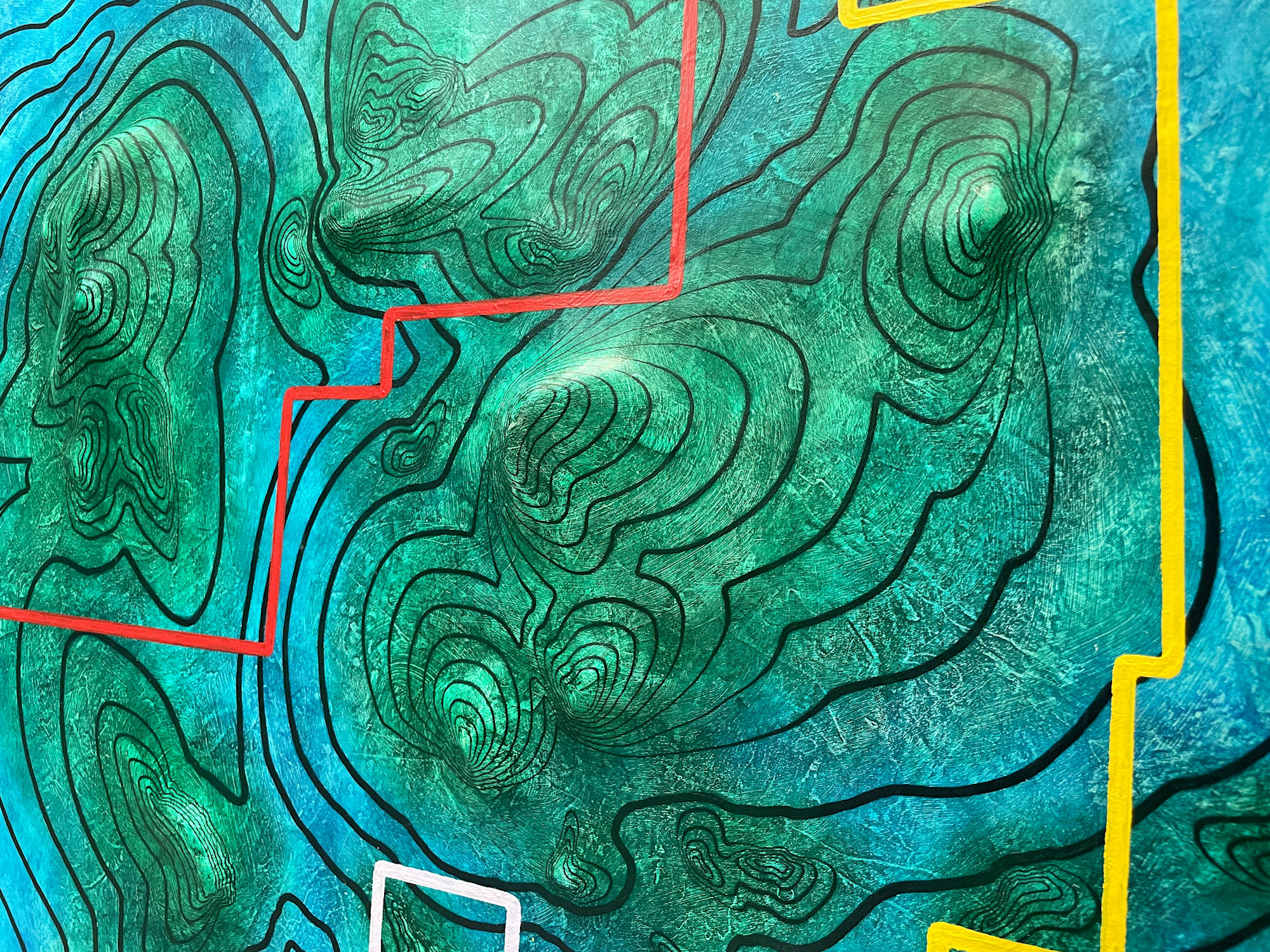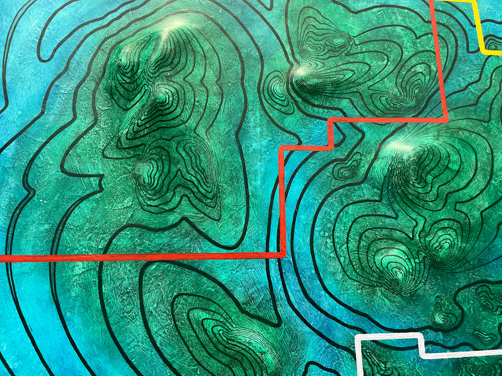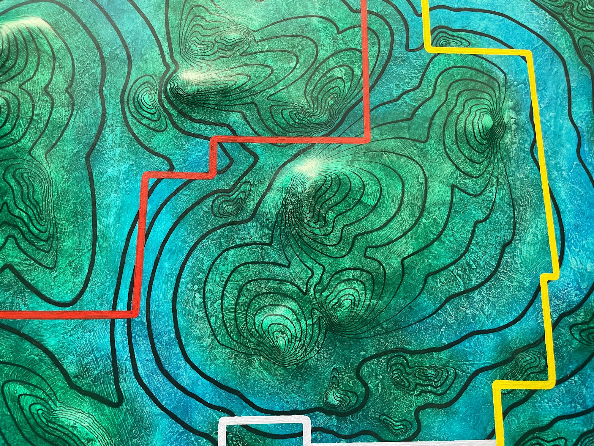 This composition becomes a narrative of interference; the moment when an external authority redraws a world that was never theirs to shape. These imposed frontiers don’t just divide land; they fracture identity, memory, and the delicate ecosystem that tie a community to its home. a visual testament to the tension between lived geography and enforced geography. Yet within the disruption, there is resilience and push back across the imposed lines, refusing to be contained. In that resistance, the artwork suggests that even when borders are forced upon a people, the deeper truth of place the one carried in culture, story, and collective memory can not be erased.