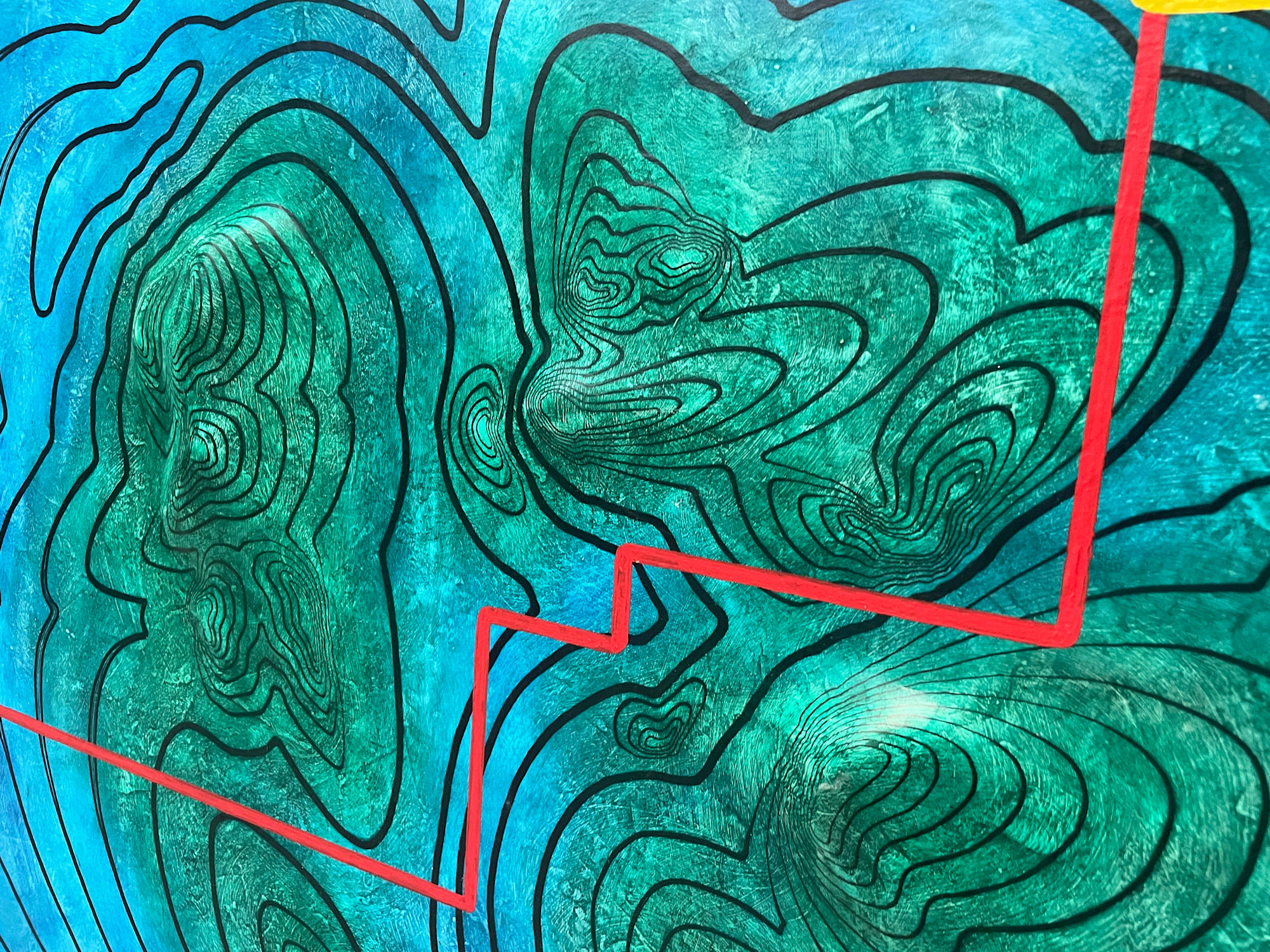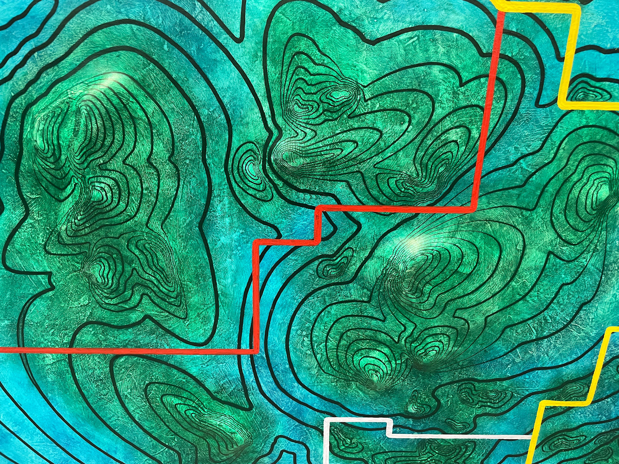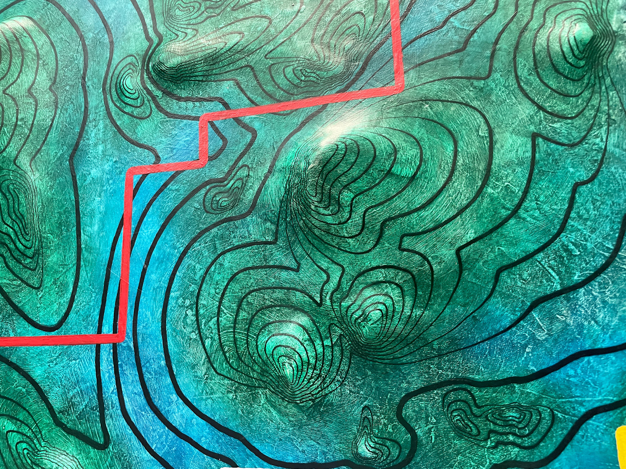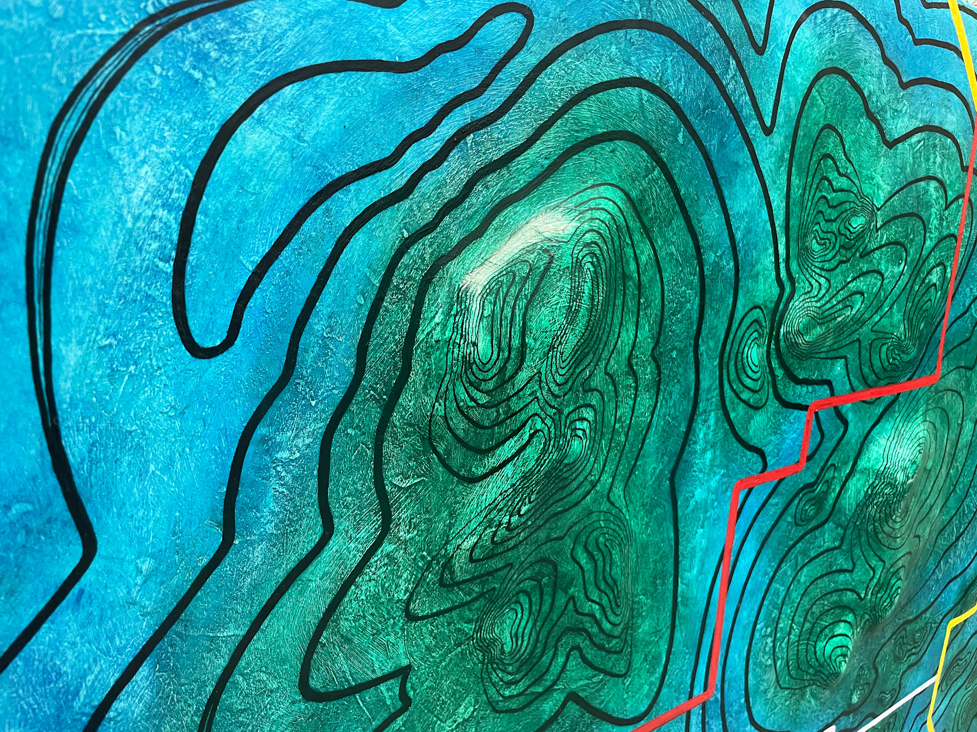 This composition becomes a narrative of interference; the moment when an external authority redraws a world that was never theirs to shape. These imposed frontiers don’t just divide land; they fracture identity, memory, and the delicate ecosystem that tie a community to its home. a visual testament to the tension between lived geography and enforced geography. Yet within the disruption, there is resilience and push back across the imposed lines, refusing to be contained. In that resistance, the artwork suggests that even when borders are forced upon a people, the deeper truth of place the one carried in culture, story, and collective memory can not be erased.