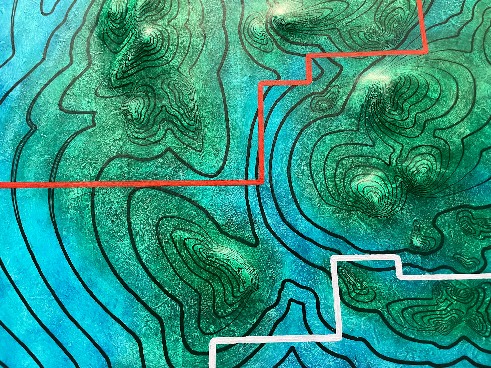~"Imposed Frontiers" manifest of destiny onto a new territory, signifying of power and control separating stablished societies shaped by ownership, dominance, and surveying of resources, forcing intrusive agreements by rearranging the landscape, with little or non consensus of the people who inhabits the land and their history.