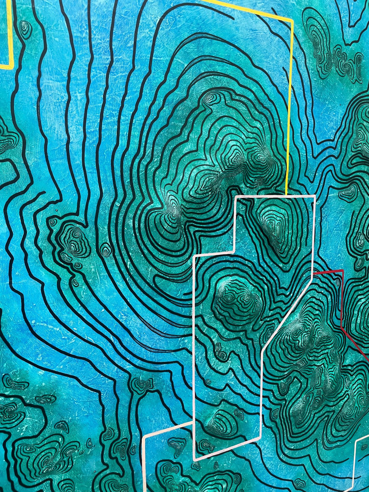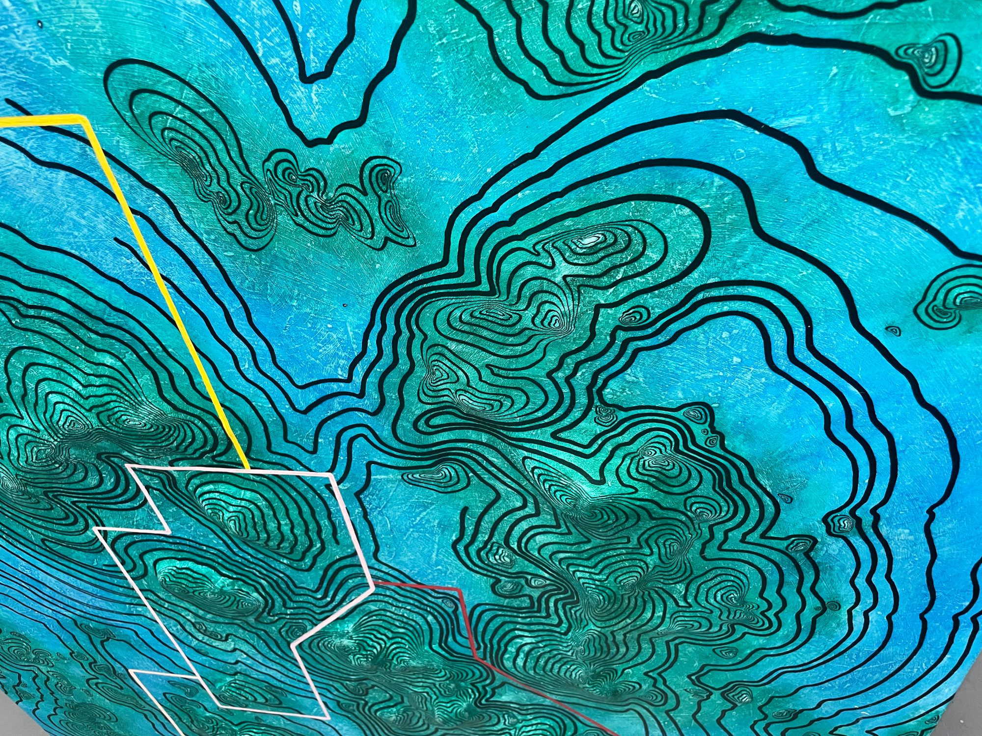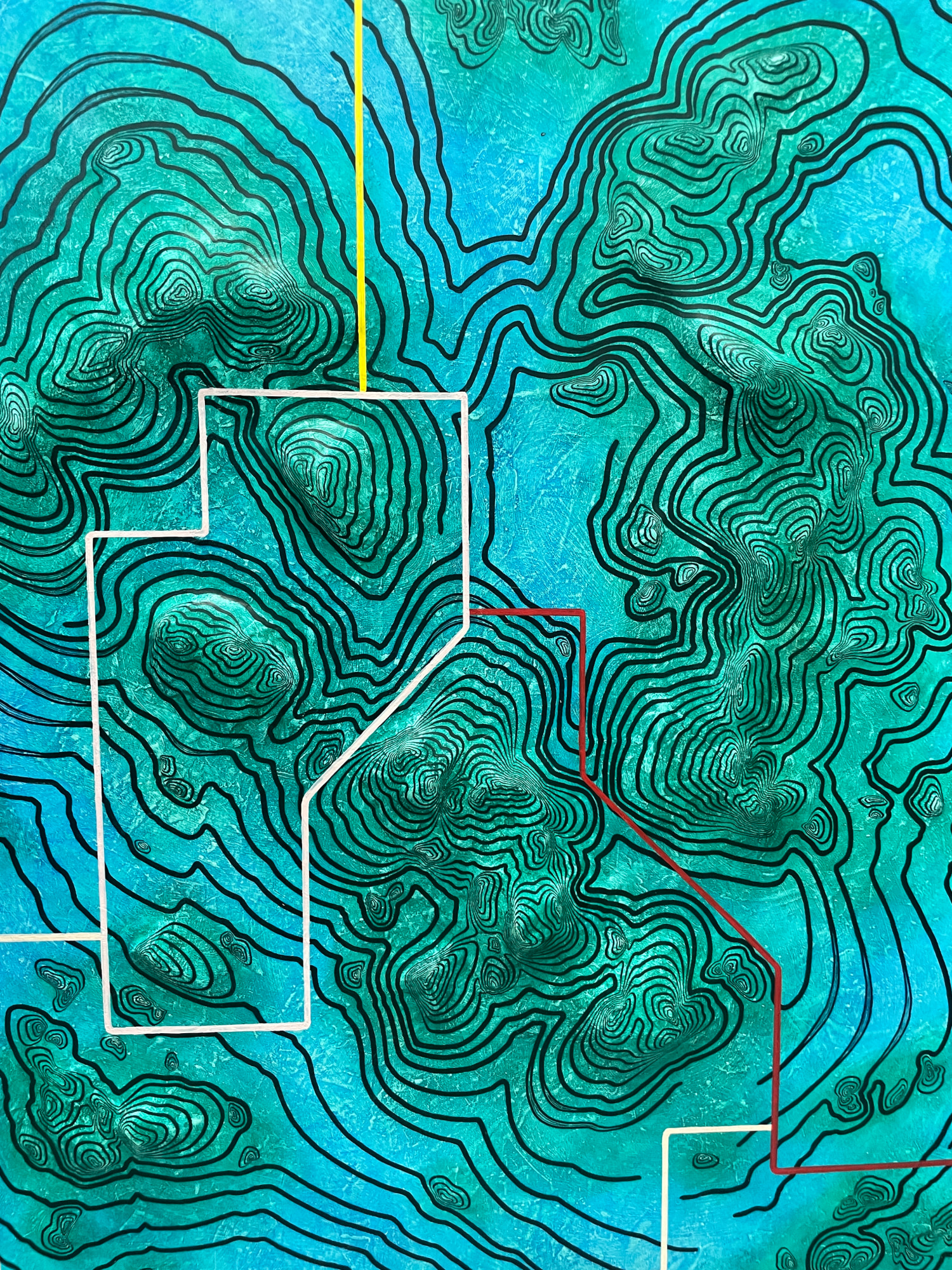 • Mixed Media, autobody filler putty, acrylic, oil, oil marker on wood pannel.