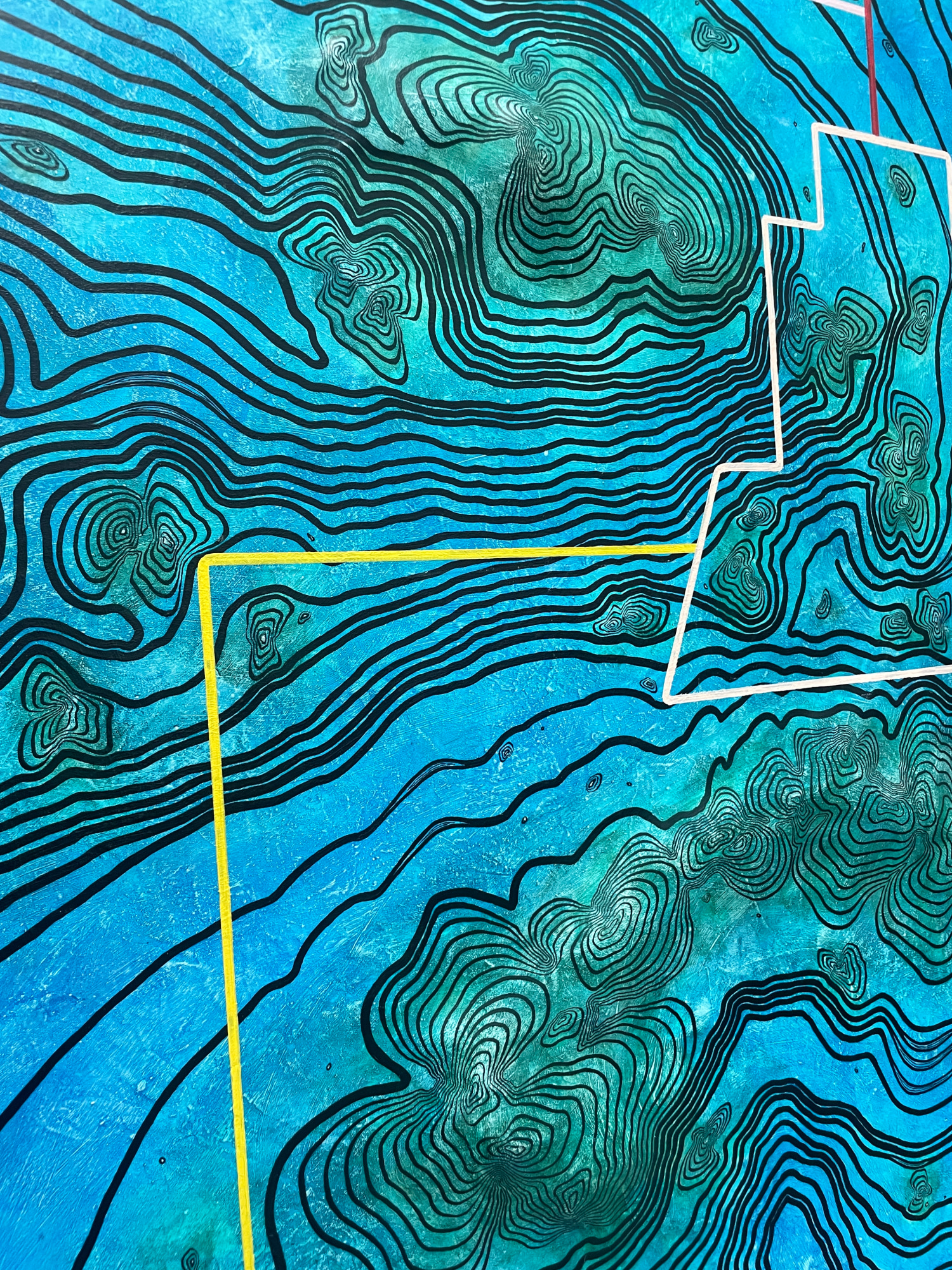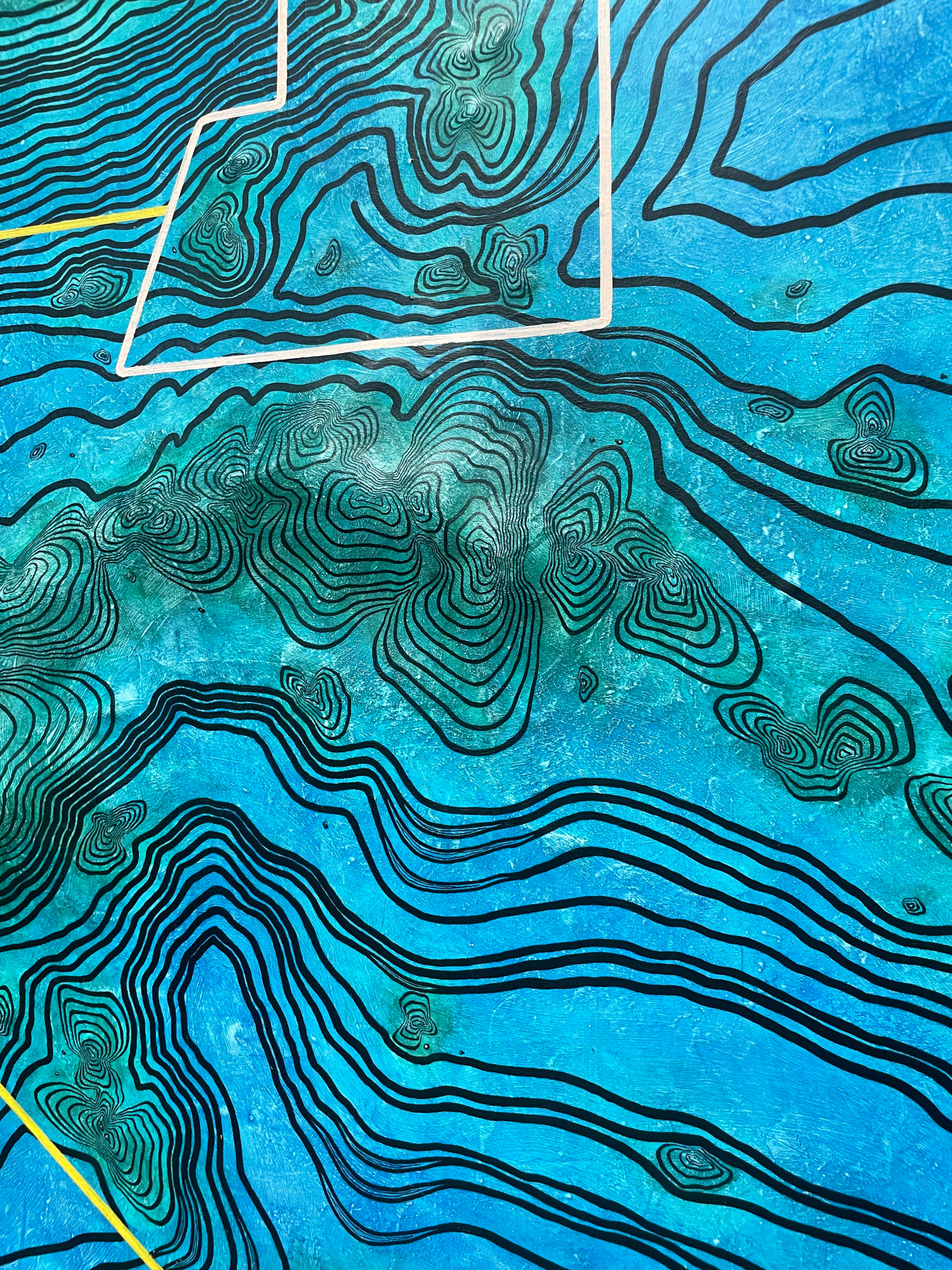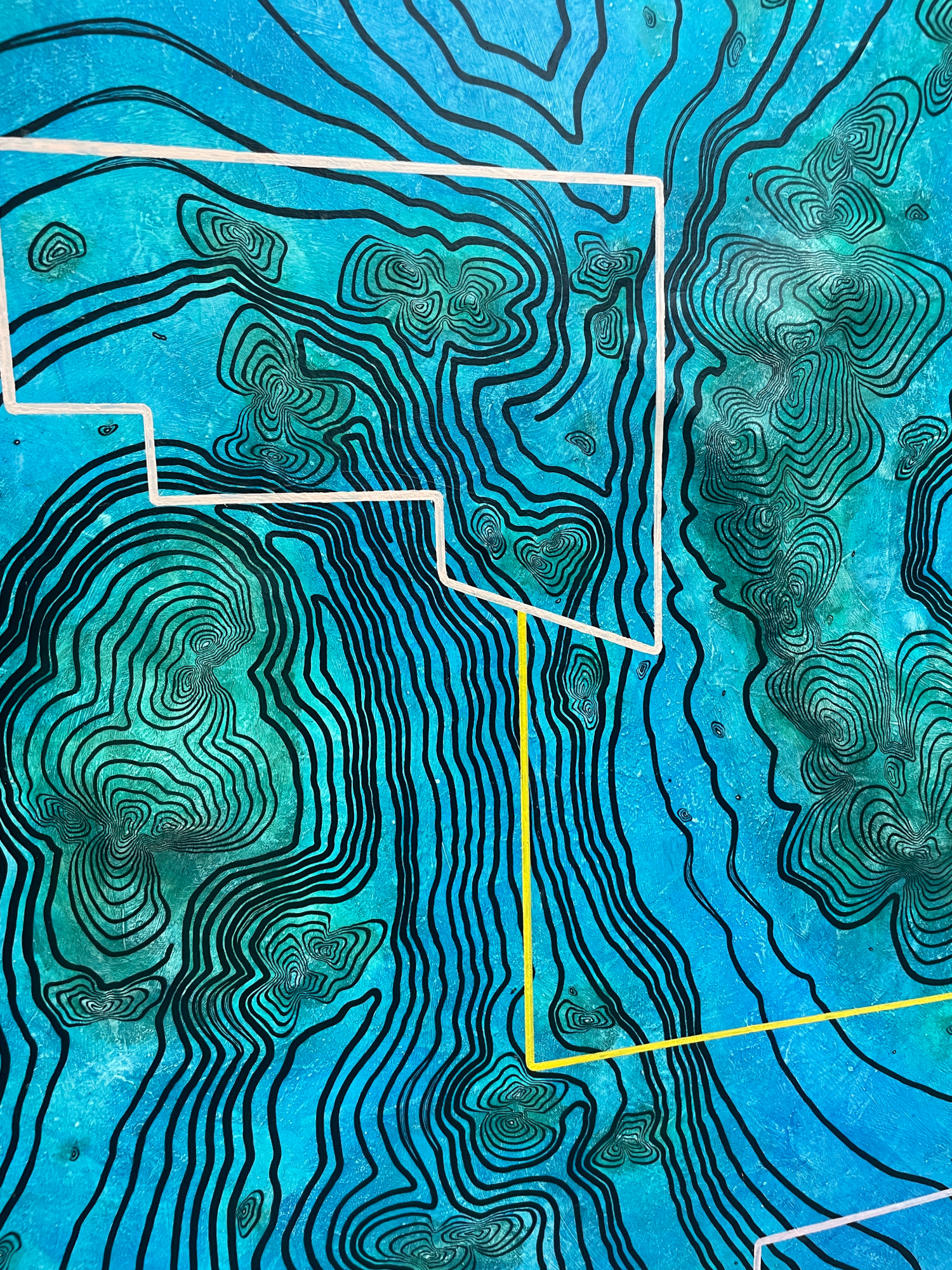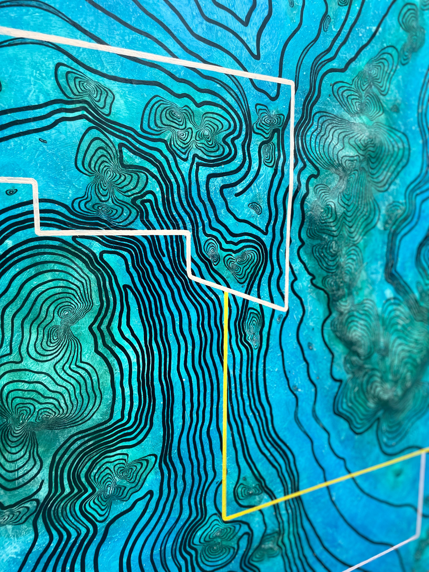 This composition is influenced by the driving motive of ownership of our natural world, how the rules are set to divid in pieces, splitting the landscape into pieces "Partition" delves into history's practice of drawing borders to signify control over land and resources.