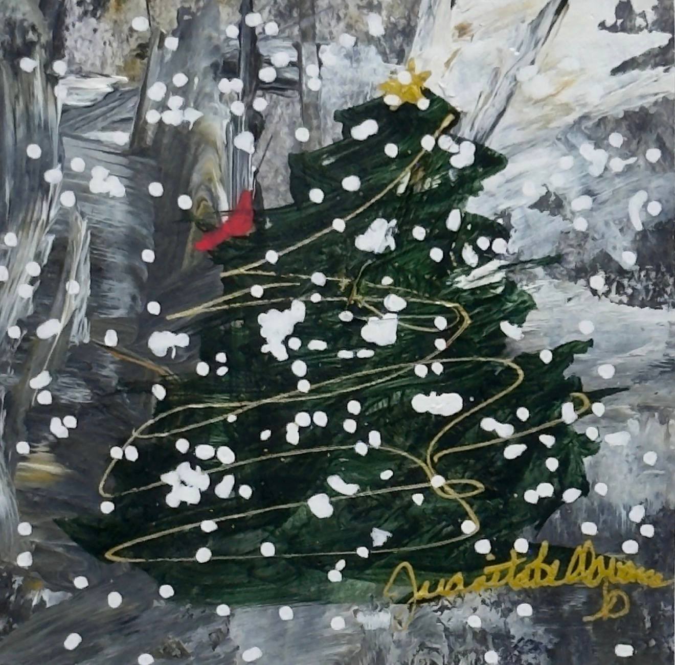 Bring the spirit of the season into your home or gift it to someone special with these 4x4" original miniature tree paintingsβ€”each one a signed, one-of-a-kind artwork by Juanita Bellavance with optional matted only, modern frame or antique style frame.