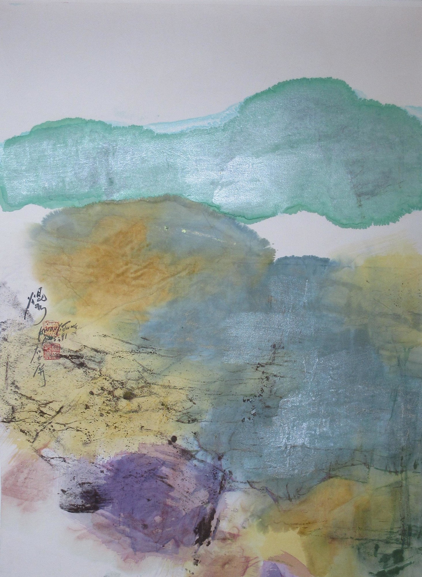 - Signature: Kwan Y. Jung, AWS, 94, Chinese signature, English chop seal AWS, Chinese chop seal.