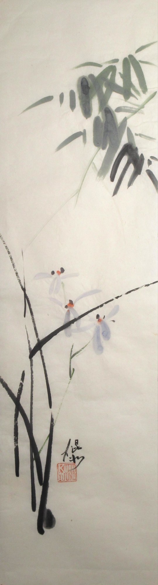 Unmounted painting of irises and bamboo.