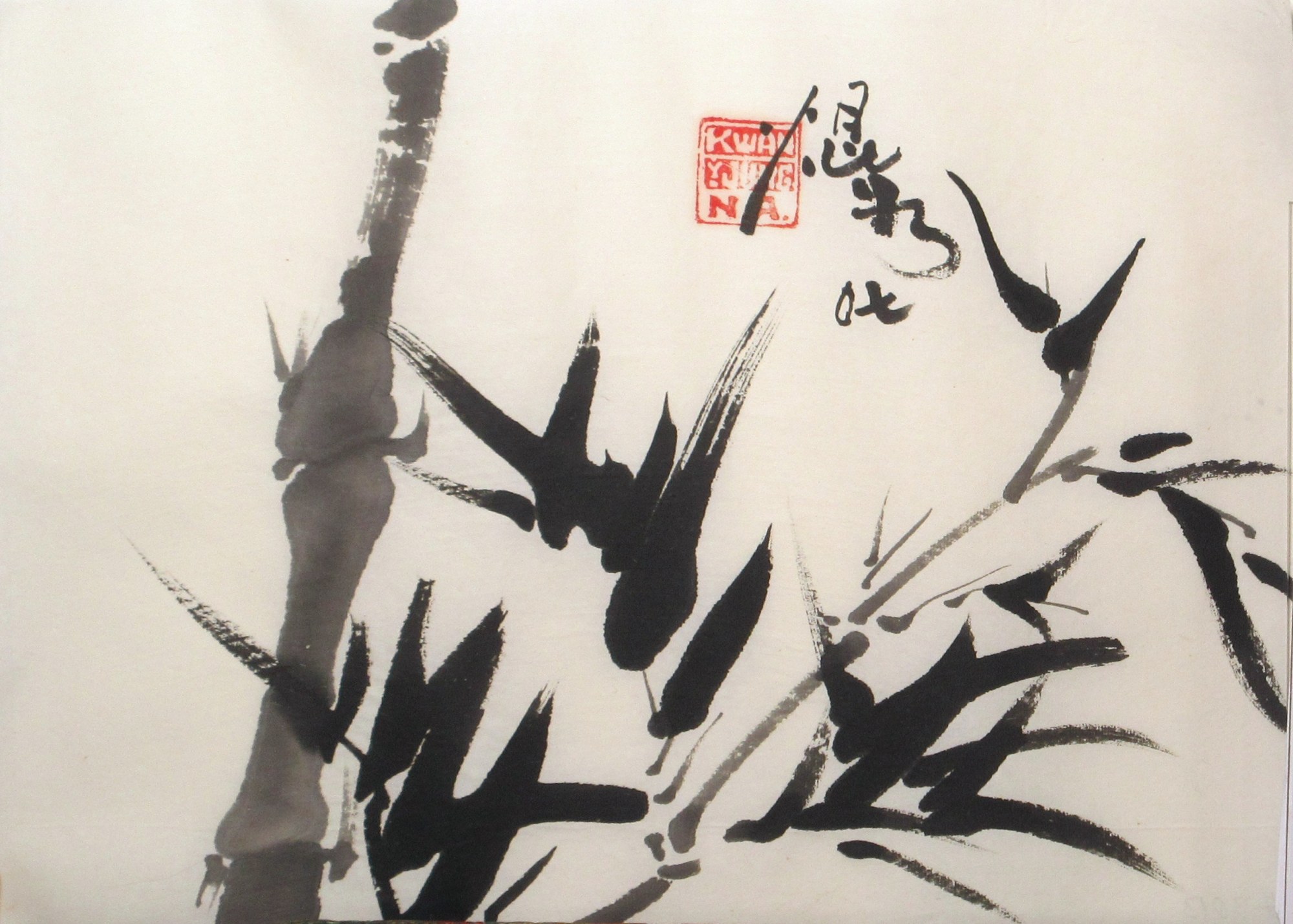 Thick bamboo stalk with black leaves. Unmounted.
