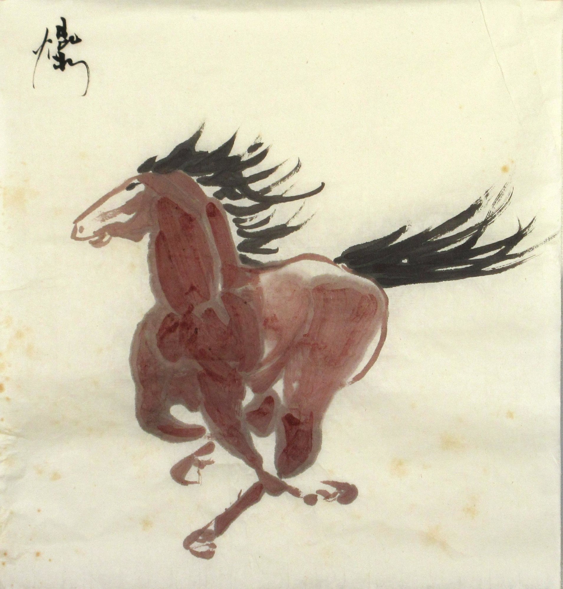 A running bay horse. Unmounted linen paper.
