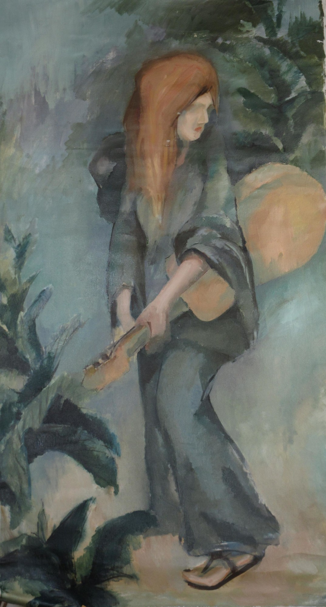 Impressionistic portrait of a girl with a guitar. Unmounted canvas.