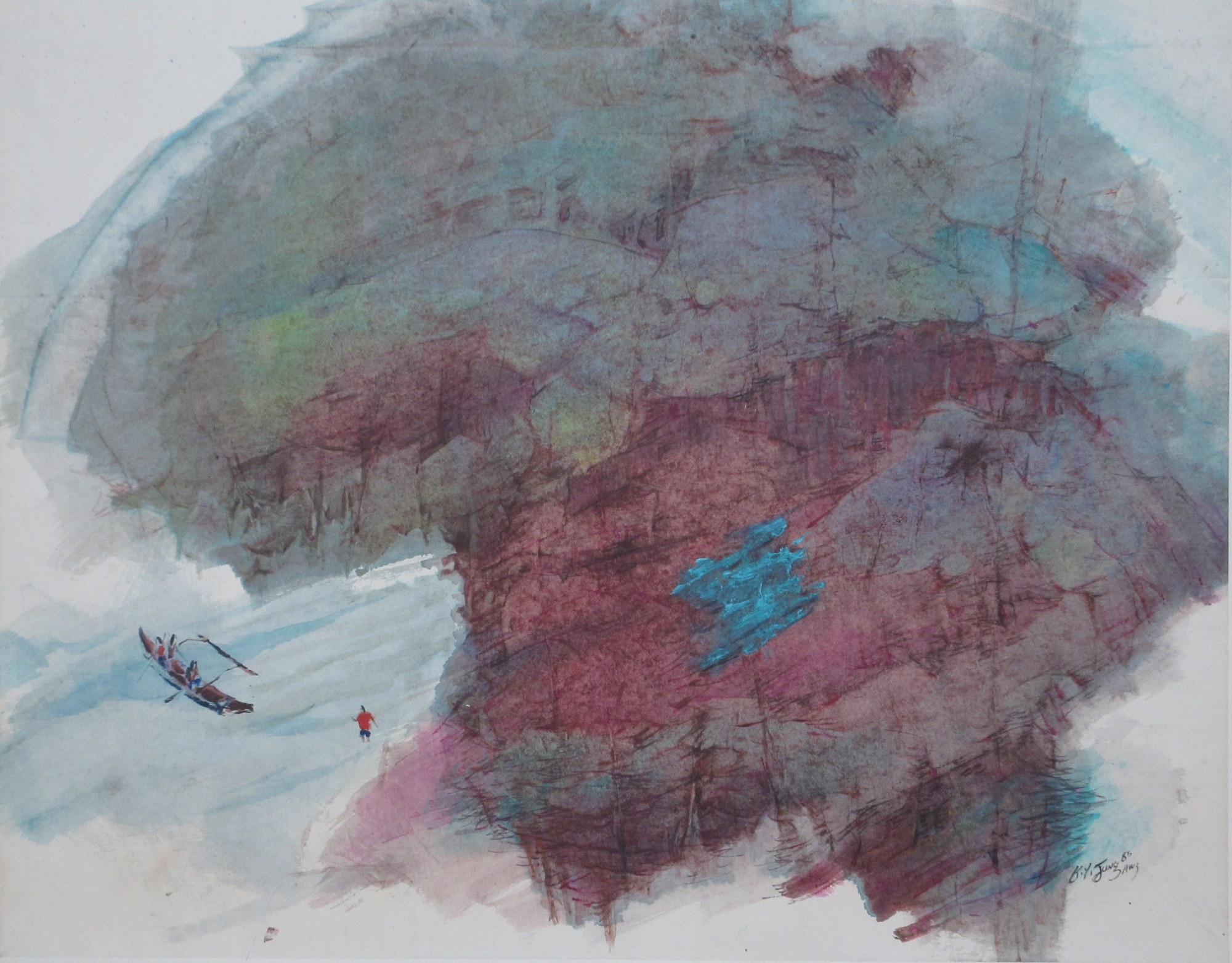 Mounted on watercolor paper.