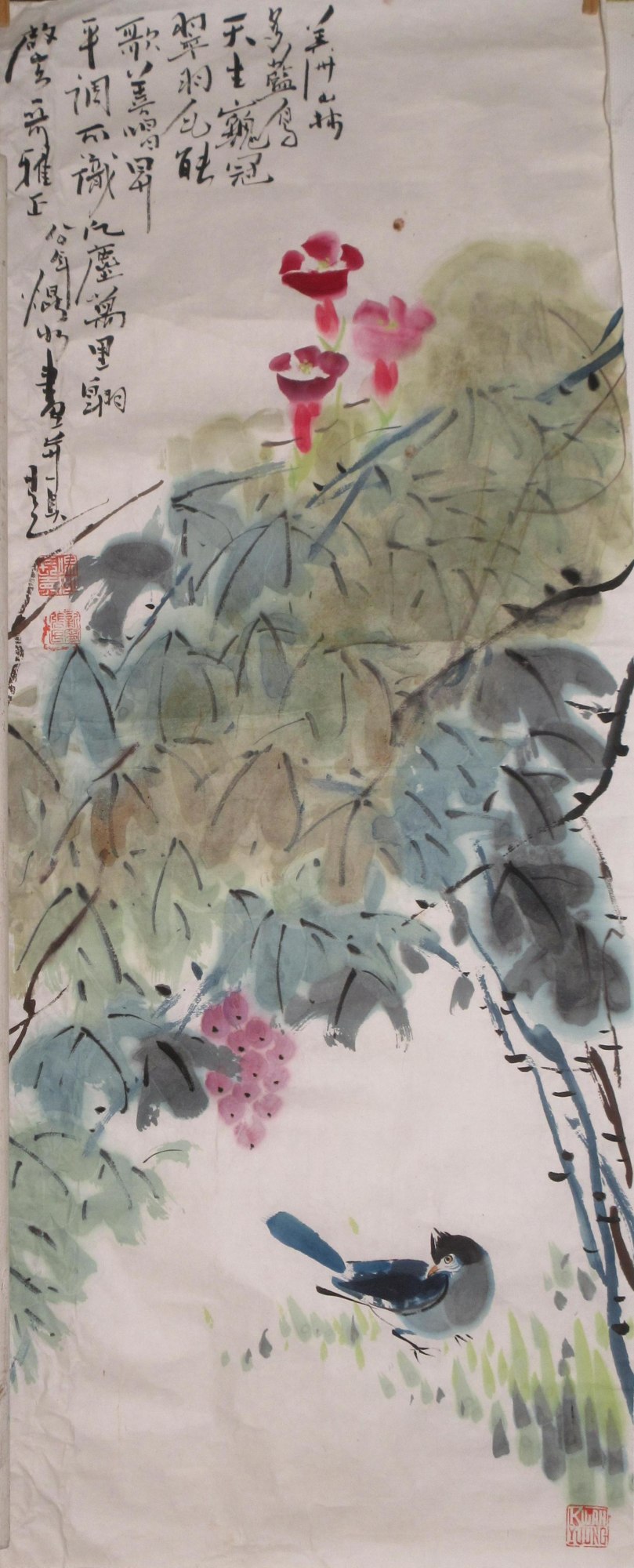 - Signature: Chinese signature, two Chinese chop seals, calligraphy.