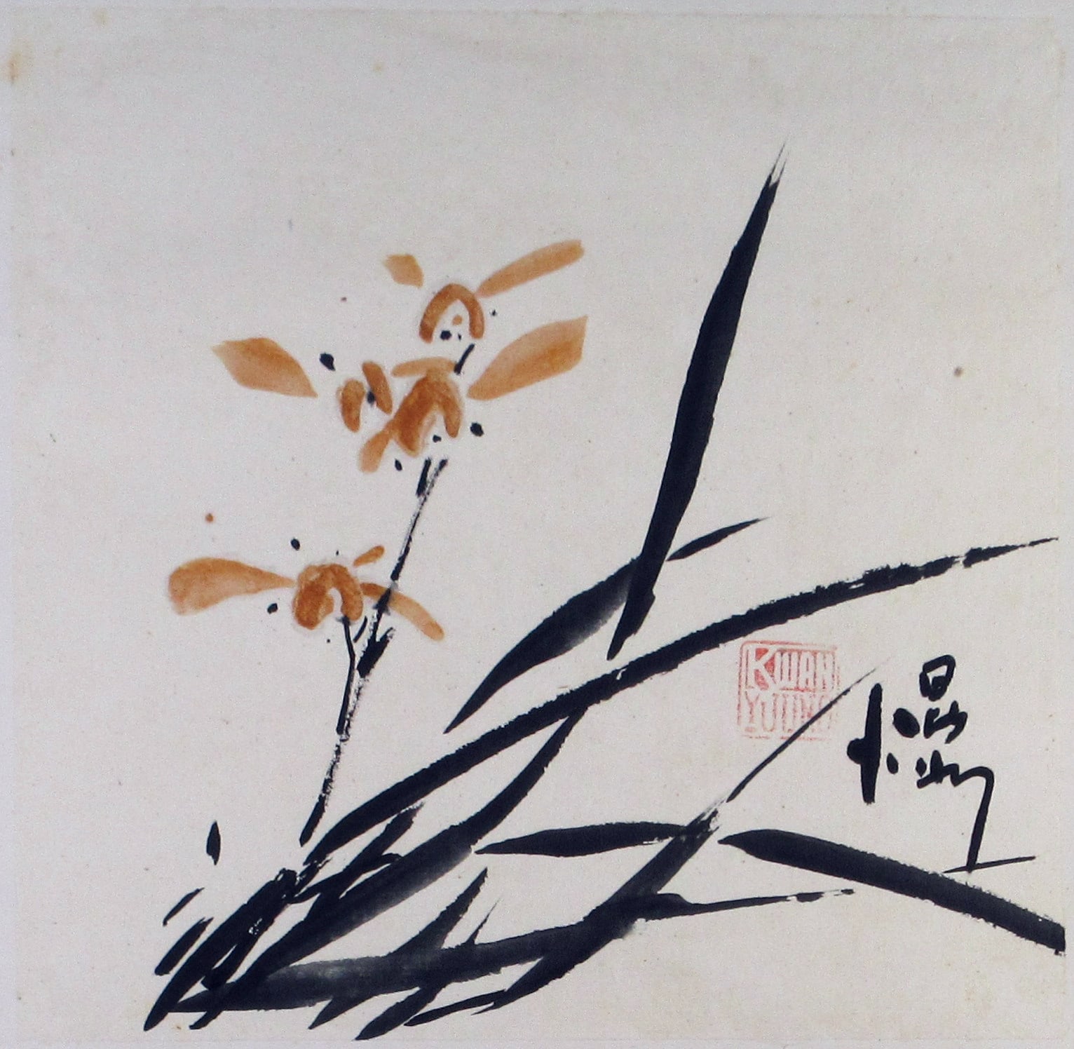 A painting of a clump of brown irises. Mounted on watercolor paper.