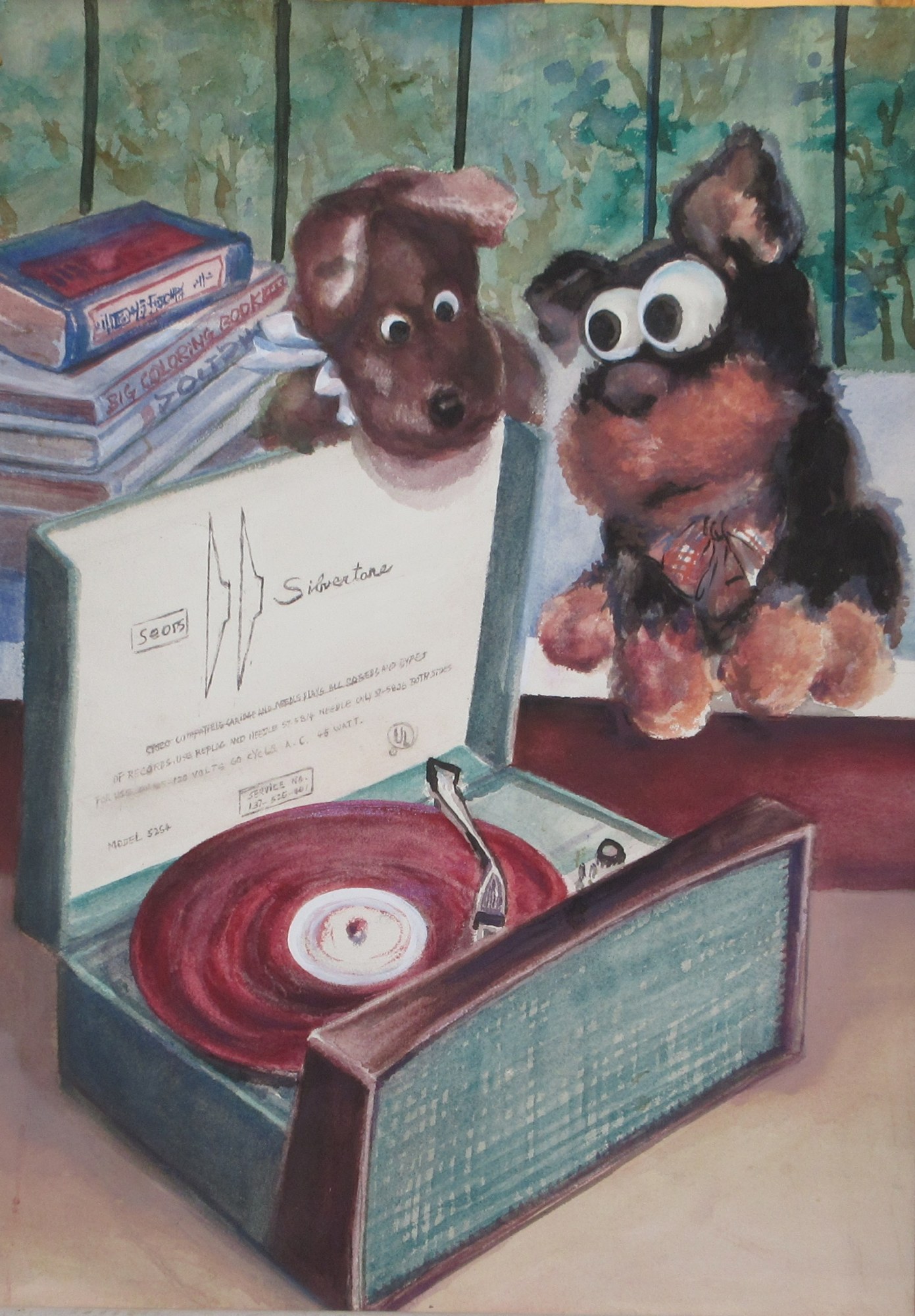 - Still Life Study - Two Toy Dogs and Portable Phonograph