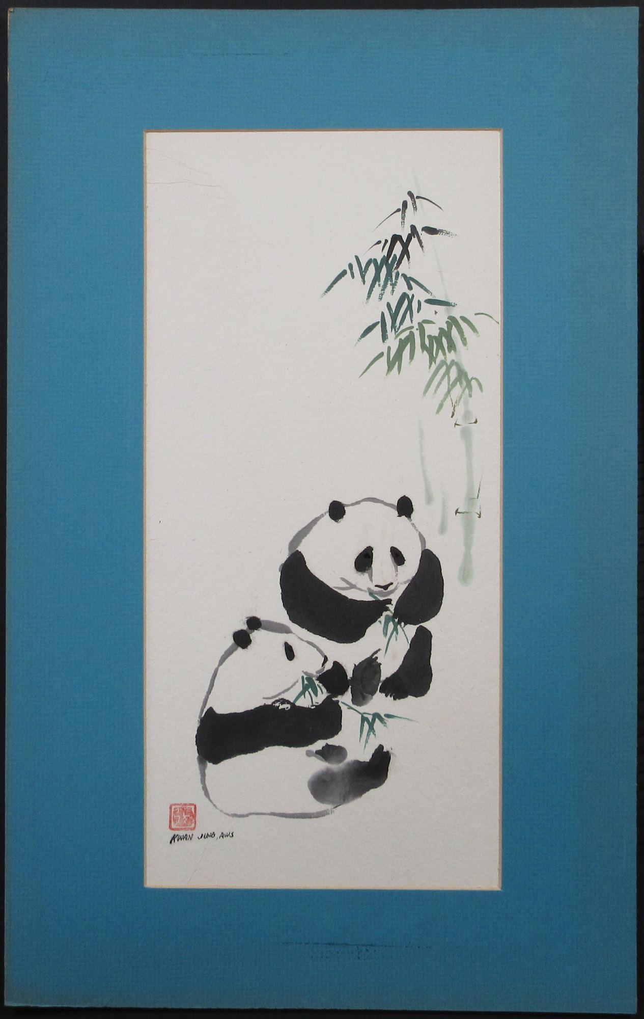 Mounted within a teal 18" x 11.5" mat frame. Ready to frame.