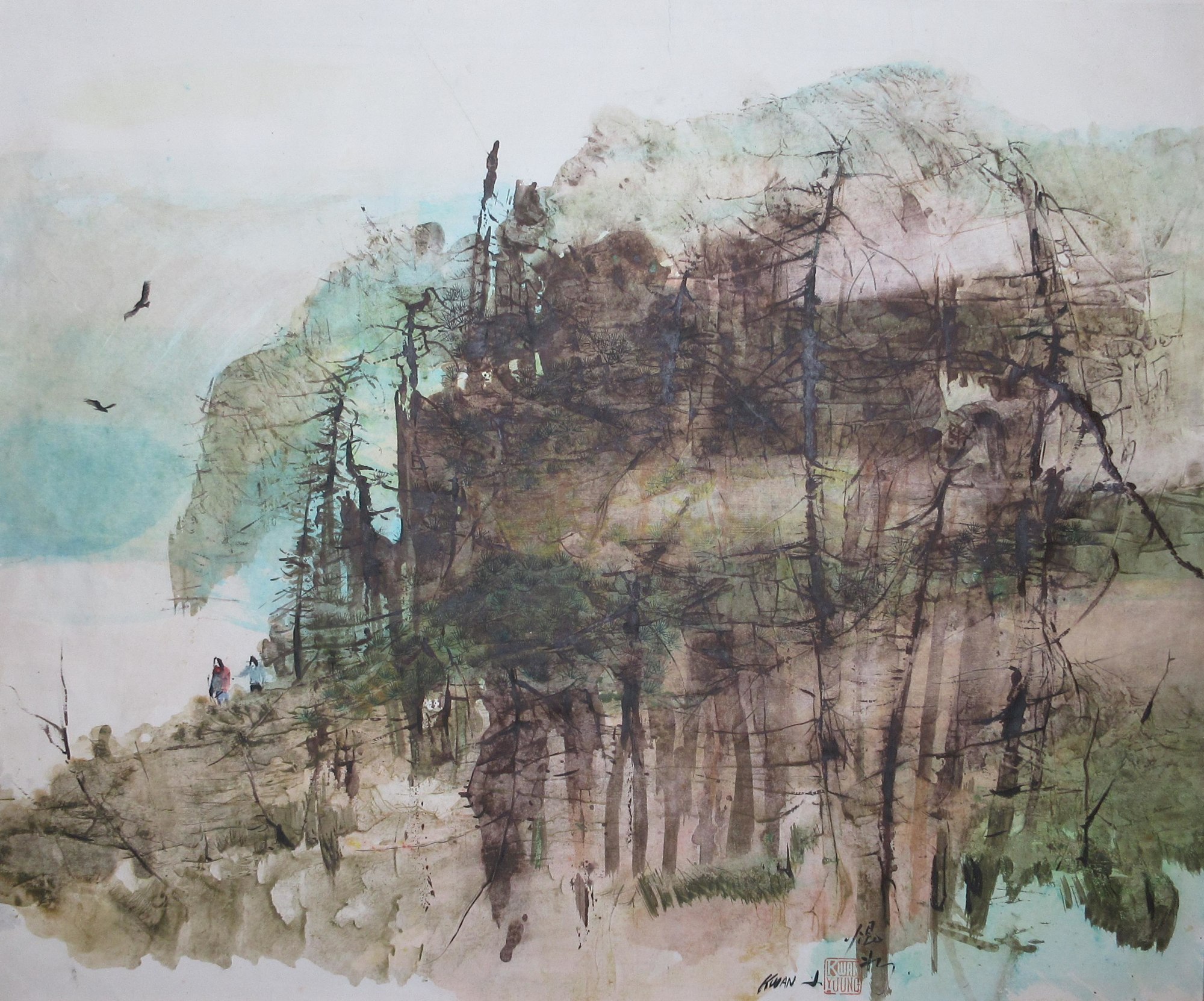 - Signature: Kwan J. , Chinese signature, English chop seal - name only.