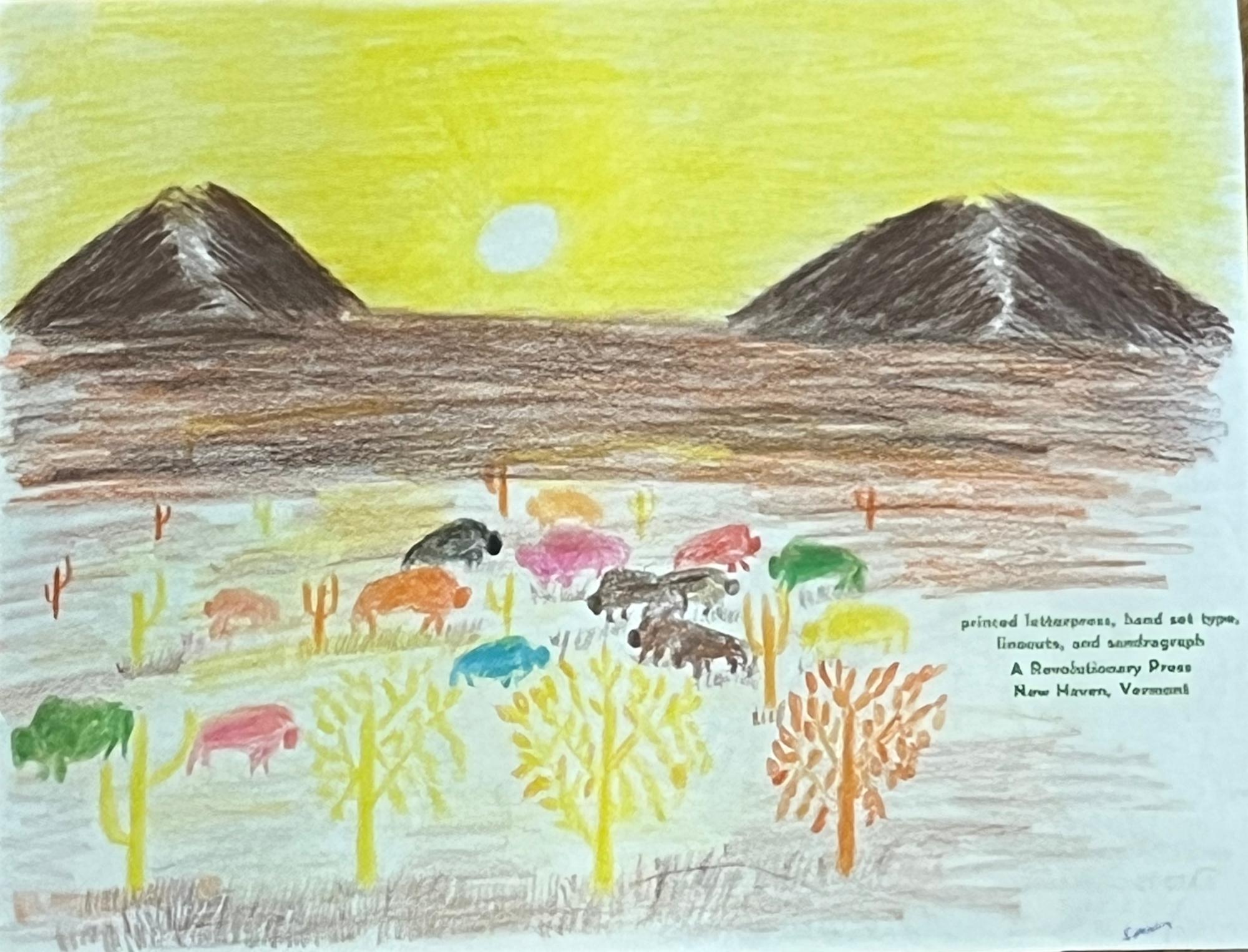 Colored pencil on letterpress zine