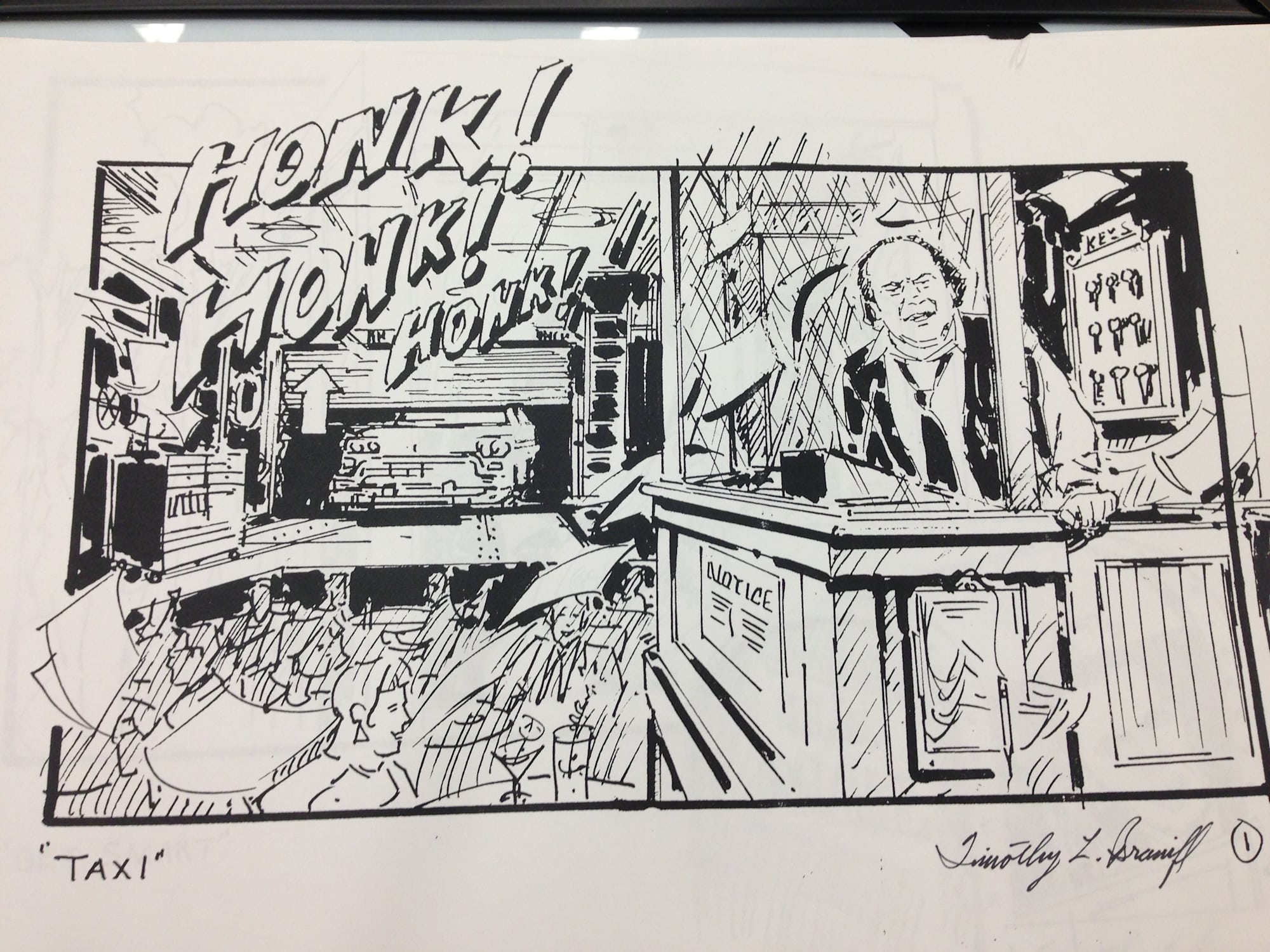 Visitors to the exhibit opening will be able to get an idea of just how closely the drawings hew to the finished product, as they leaf through full-scene booklets. And Braniff will be on hand to autograph his work for buyers.
