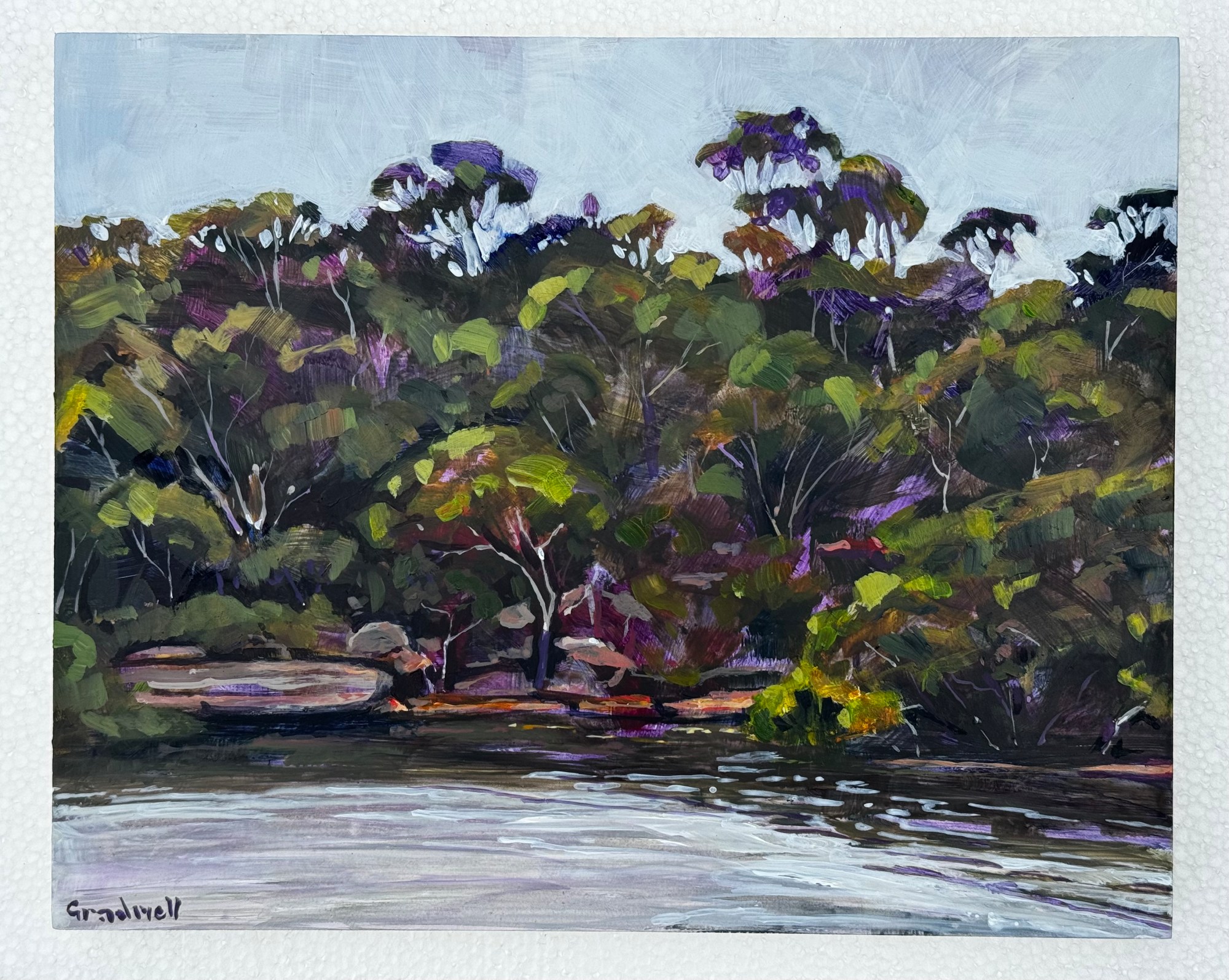Inspired by an overcast day, painting plein air at Freeman’s Reach on the Lane Cove River. Watching the waterfowl and rowers go by