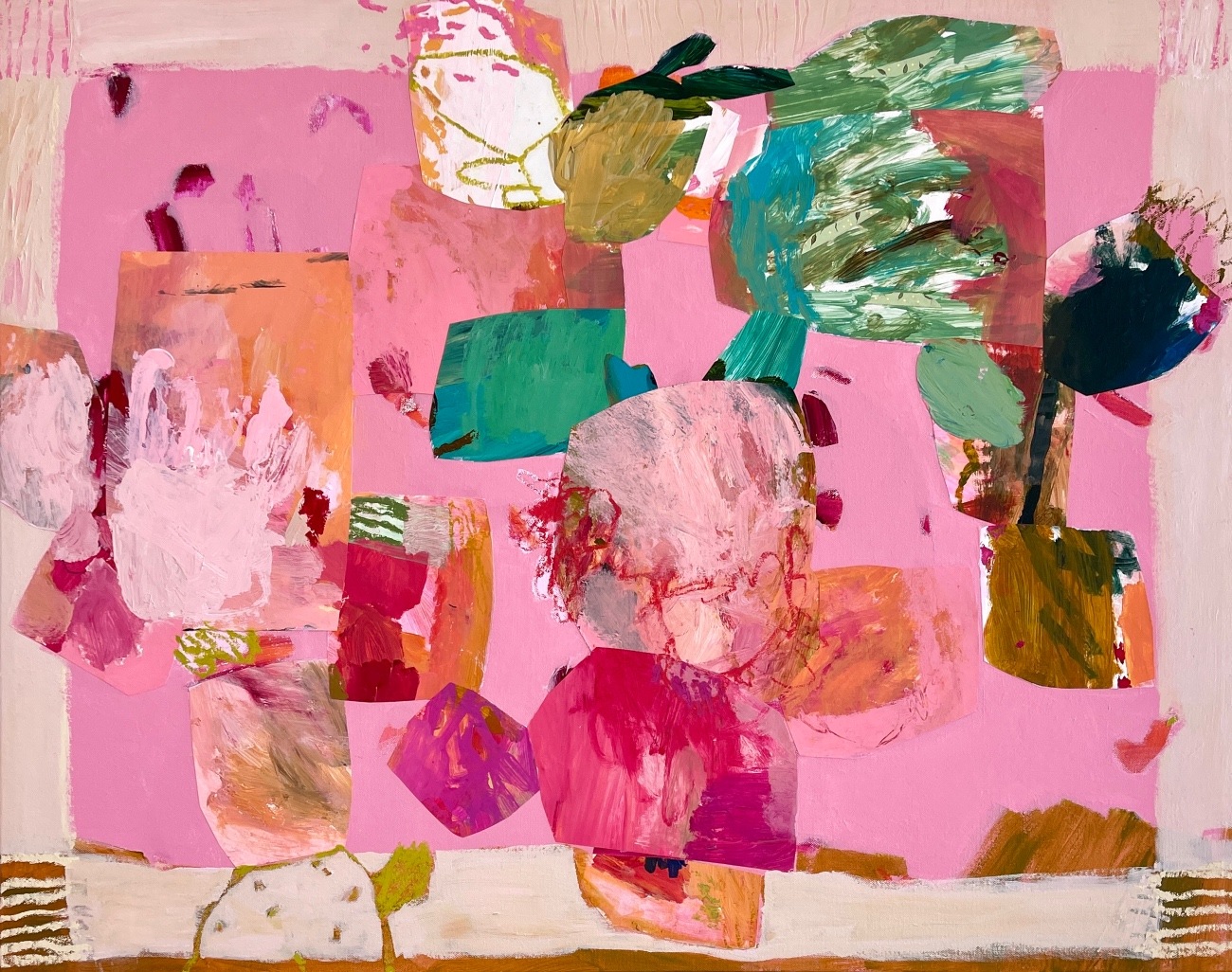 • acrylic collage & oil stick on canvas over board