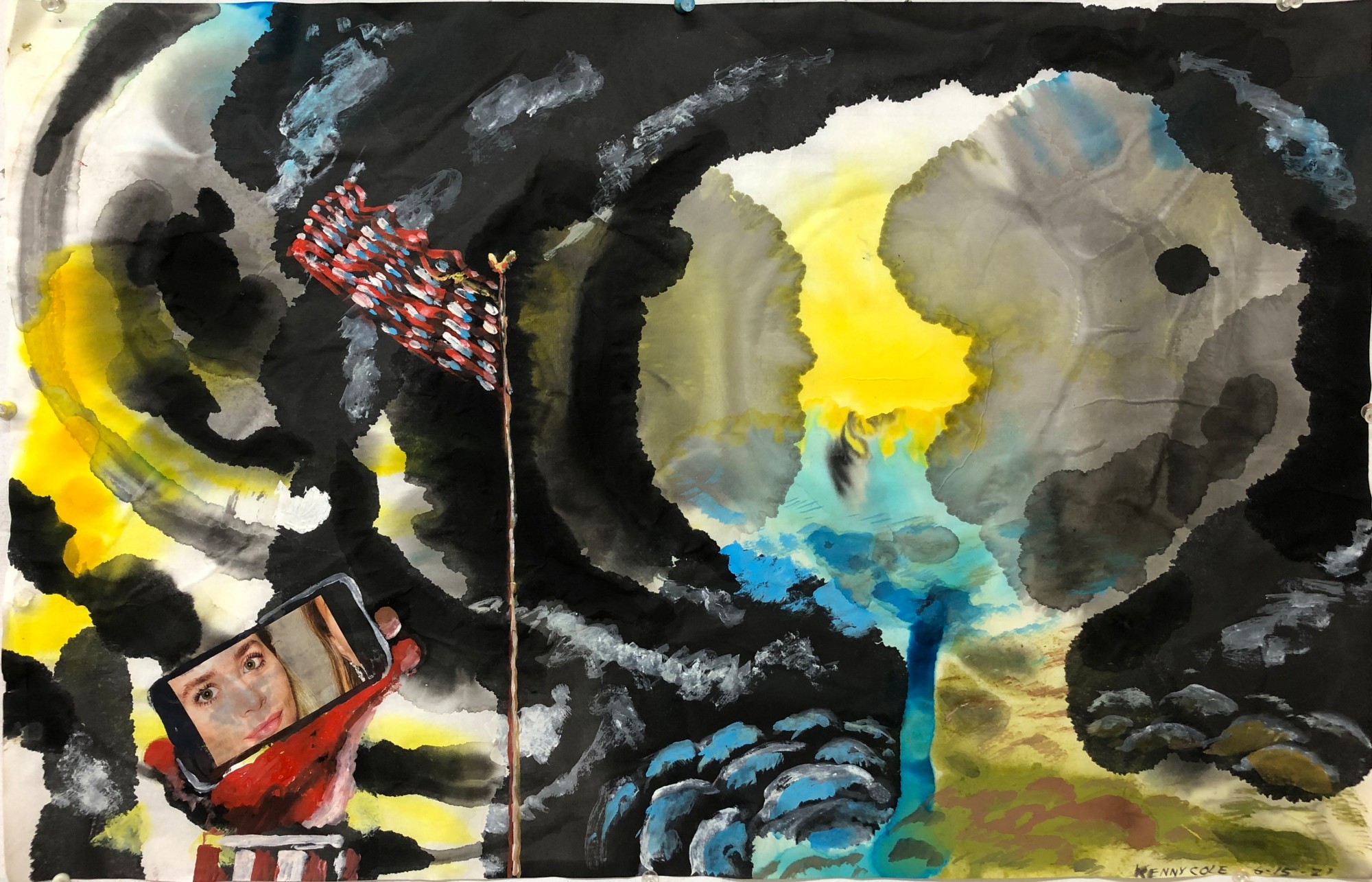 "Blown Away"  Image: Atomic explosion being viewed through a smart phone.