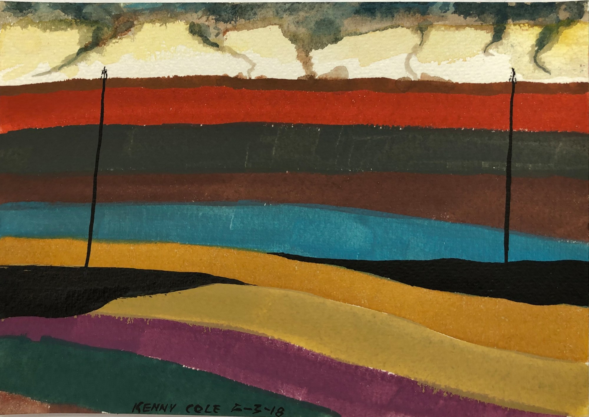 "Horizon"  Image: Tornadoes above oil field and strata.