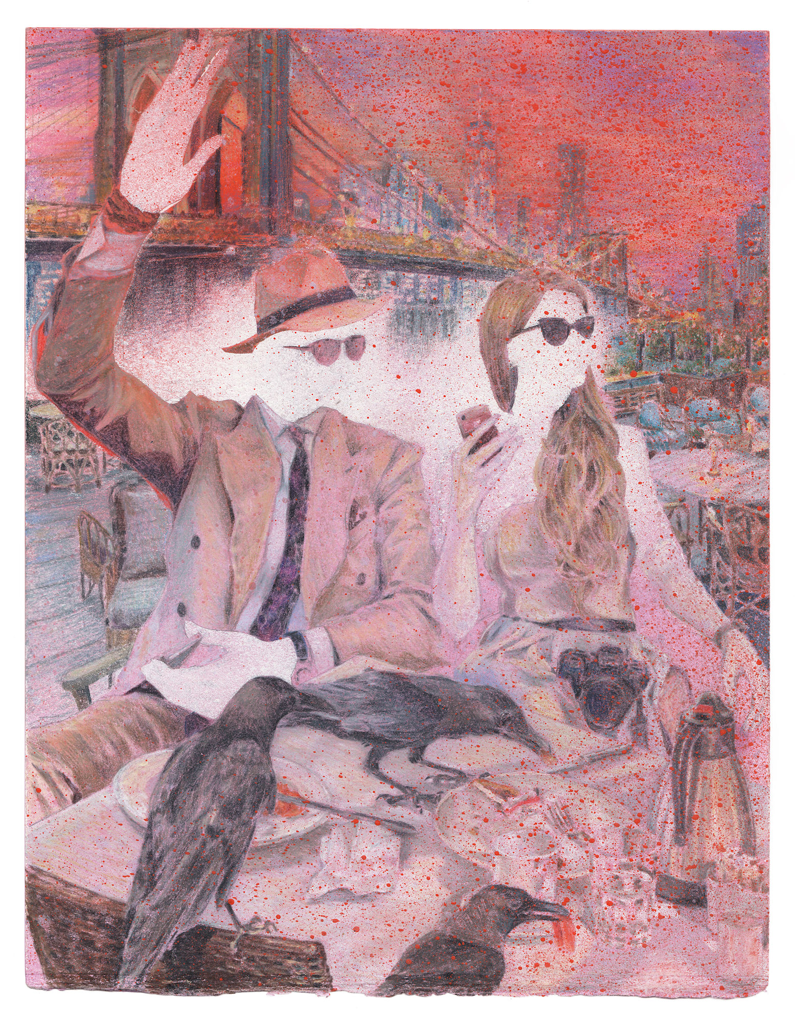 Colored pencil, acrylic, spray paint, on paper