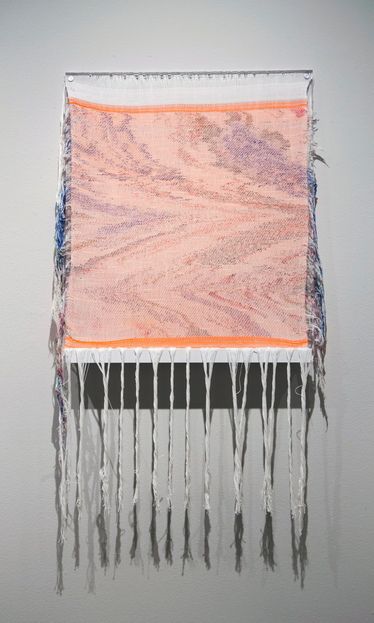 deconstructed re-purposed fabric, cotton and nylon thread pressed between two sheets of plexiglass