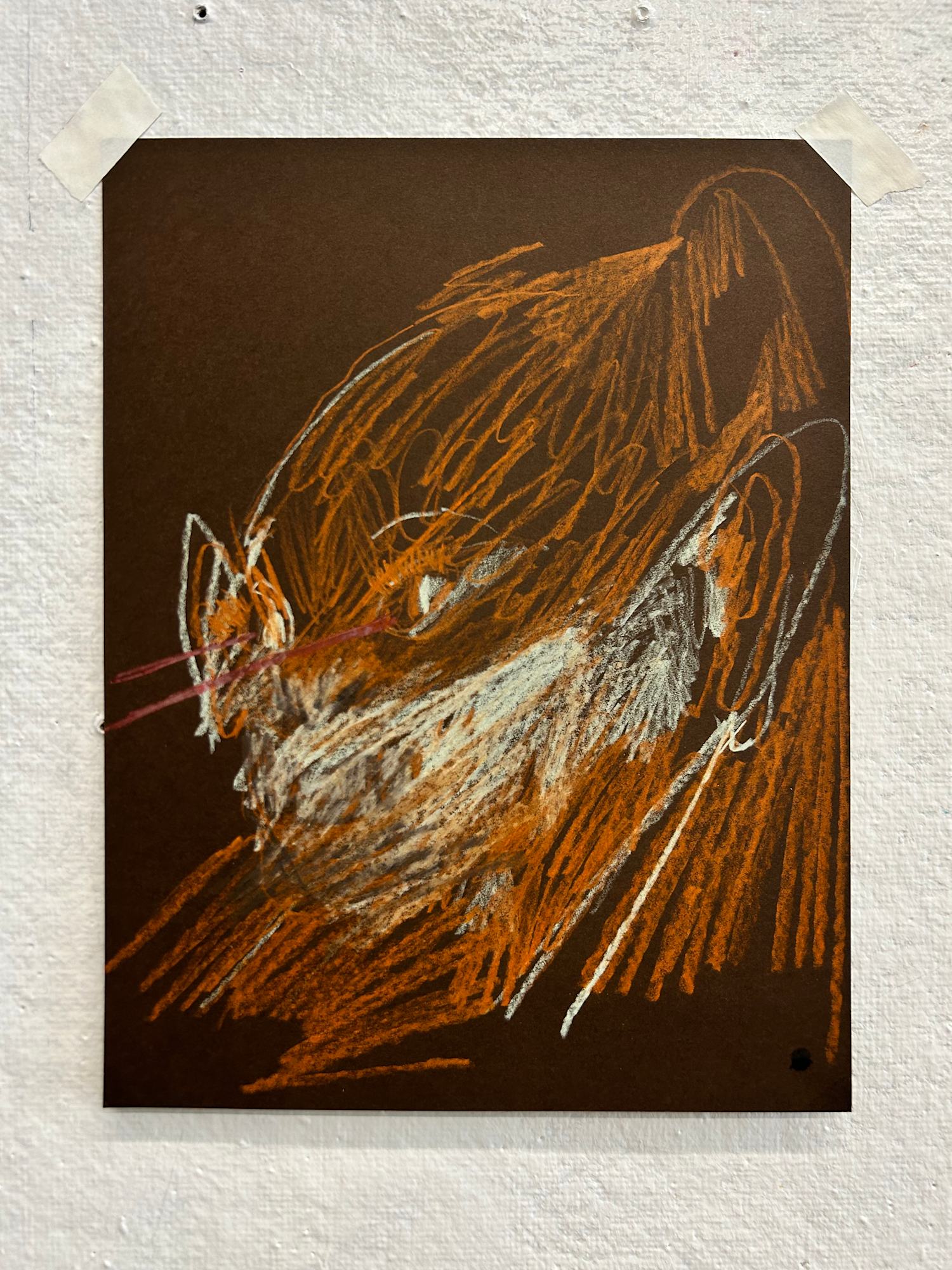 Colored pencil on toned dark brown cardstock paper