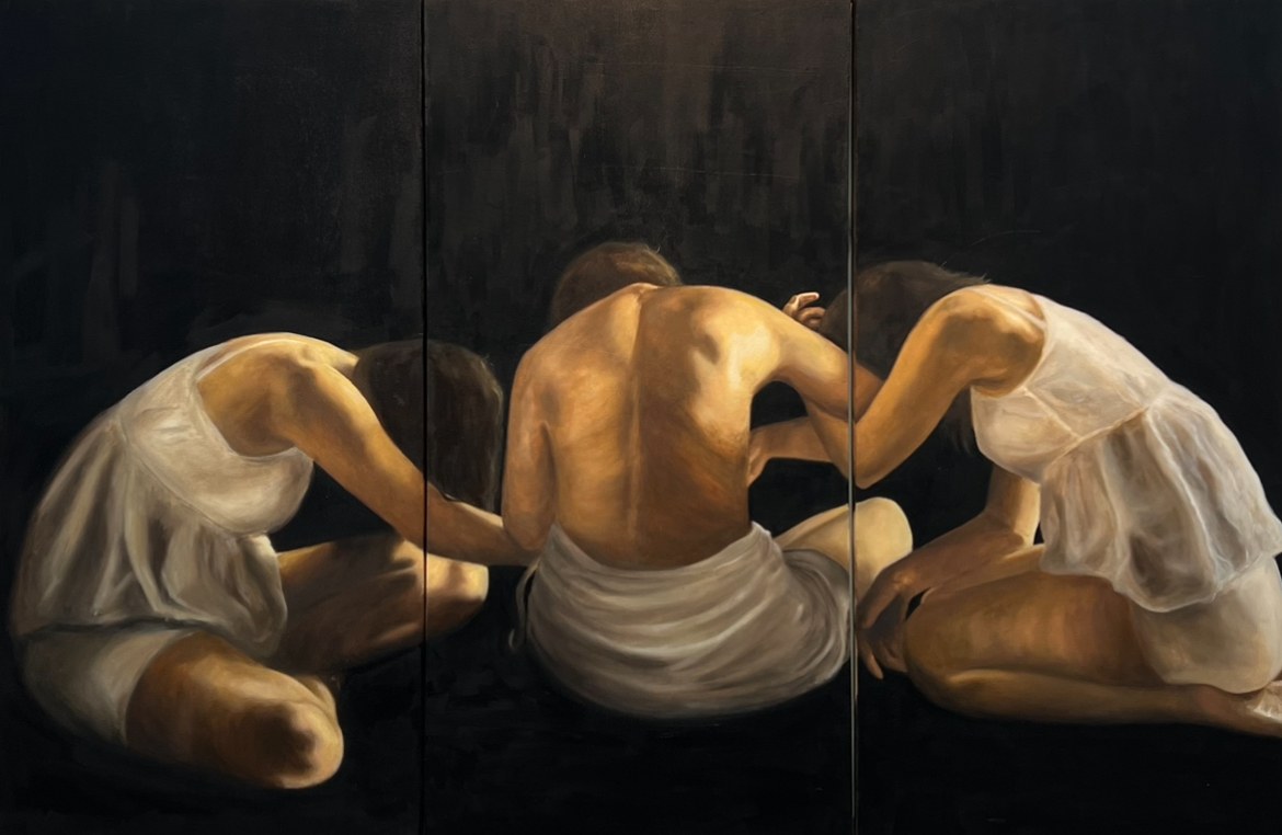 each of the 3 pieces is 25 x 48 (triptych)